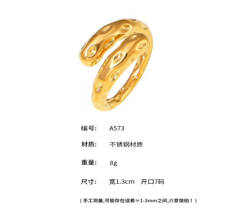 B廠【A573】歐美跨境復古錘紋岩溶戒指INS風氣質開口設計18k鍍金不銹鋼指環潮 24.08-2