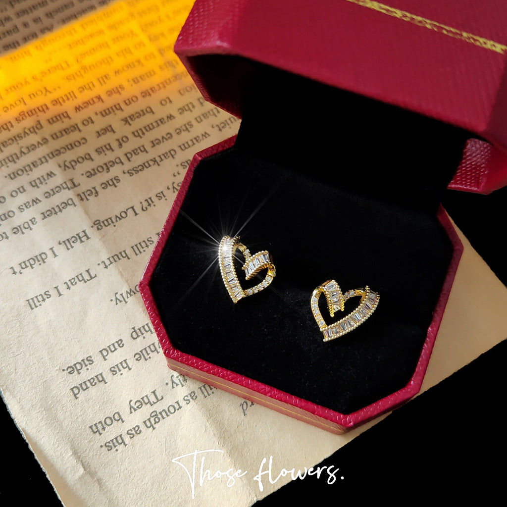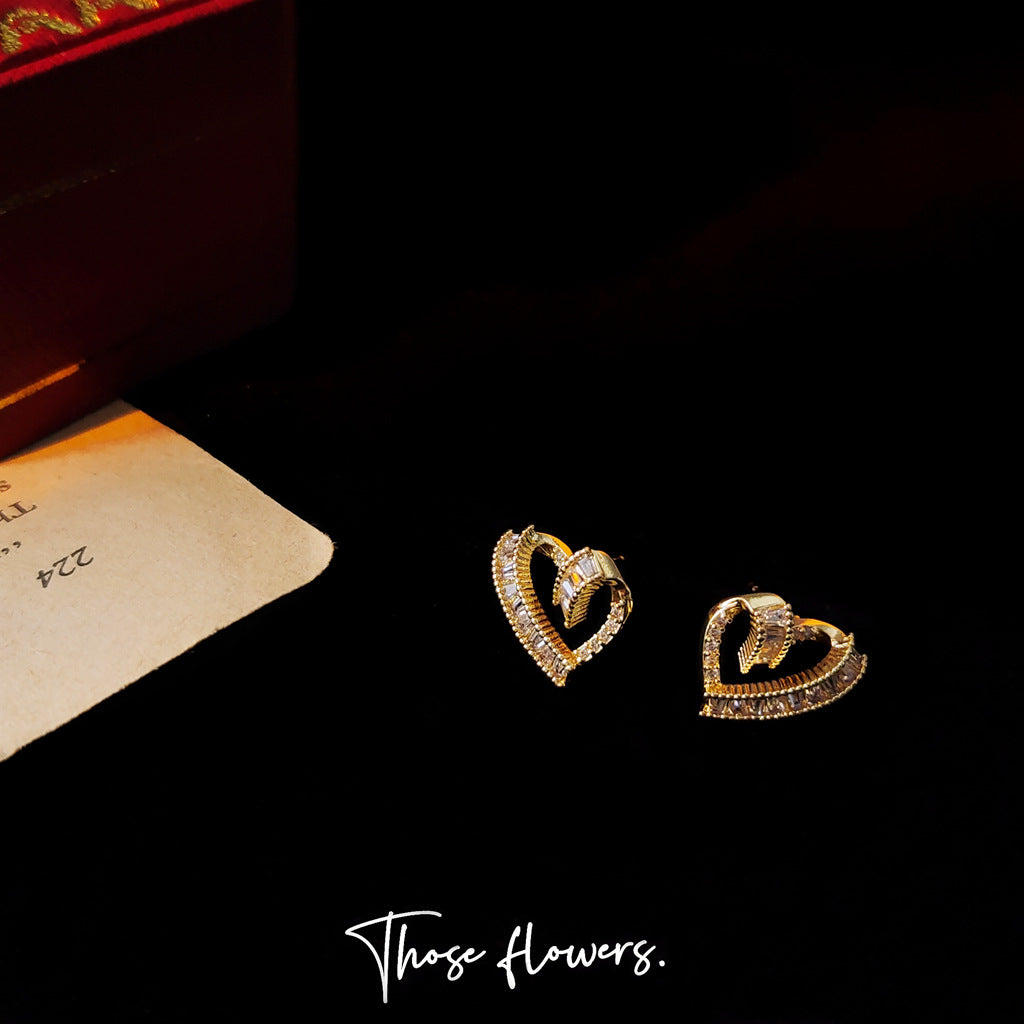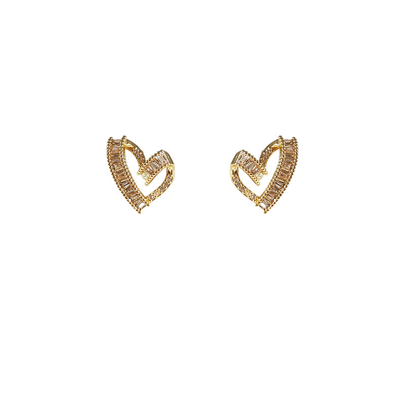 C廠【A591】法式復古微鑲鋯石心形不規則銀針鍍14K耳環氣質簡約時尚通勤耳飾 24.04-2