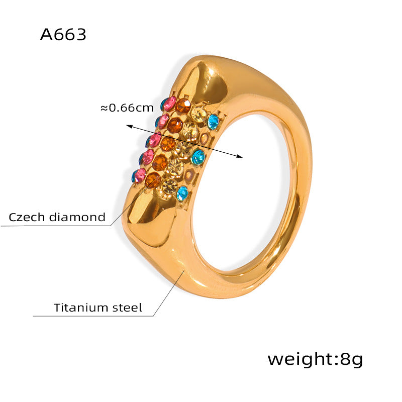 B廠【A663】ins風鑲彩色鋯石時尚指環光面設計鈦鋼鍍金對戒簡約通勤百搭戒指 24.01-2
