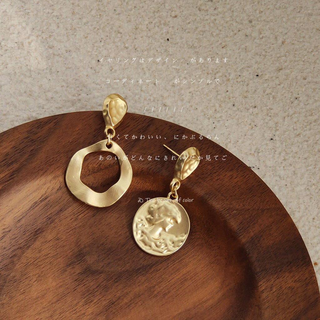 C廠【A692】法式復古高級感霧面金屬不對稱人頭像小眾設計感百搭氣質耳飾 24.03-2