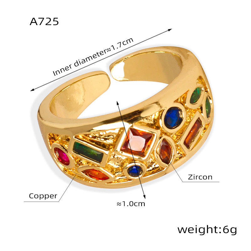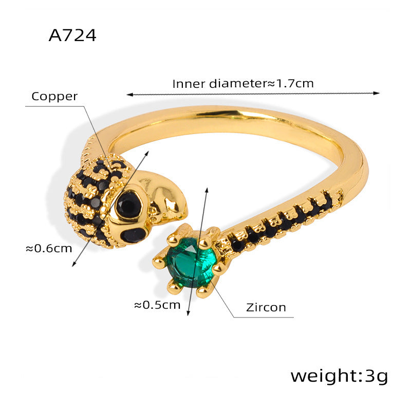 B廠【A722-7】誇張個性嘻哈龐克系列戒指2024年春季歐美新款熱賣鑲鑽銅鍍金指環 24.01-2