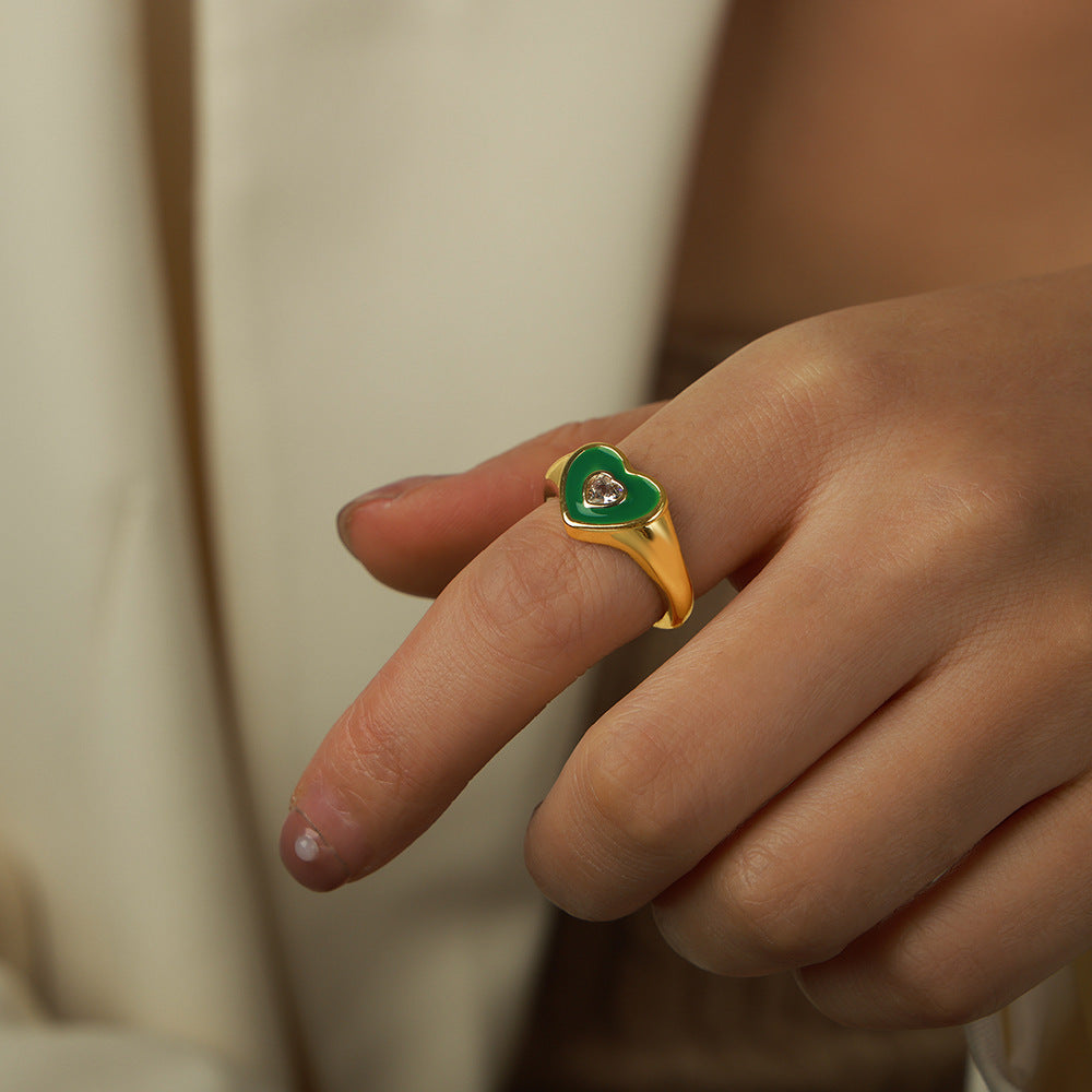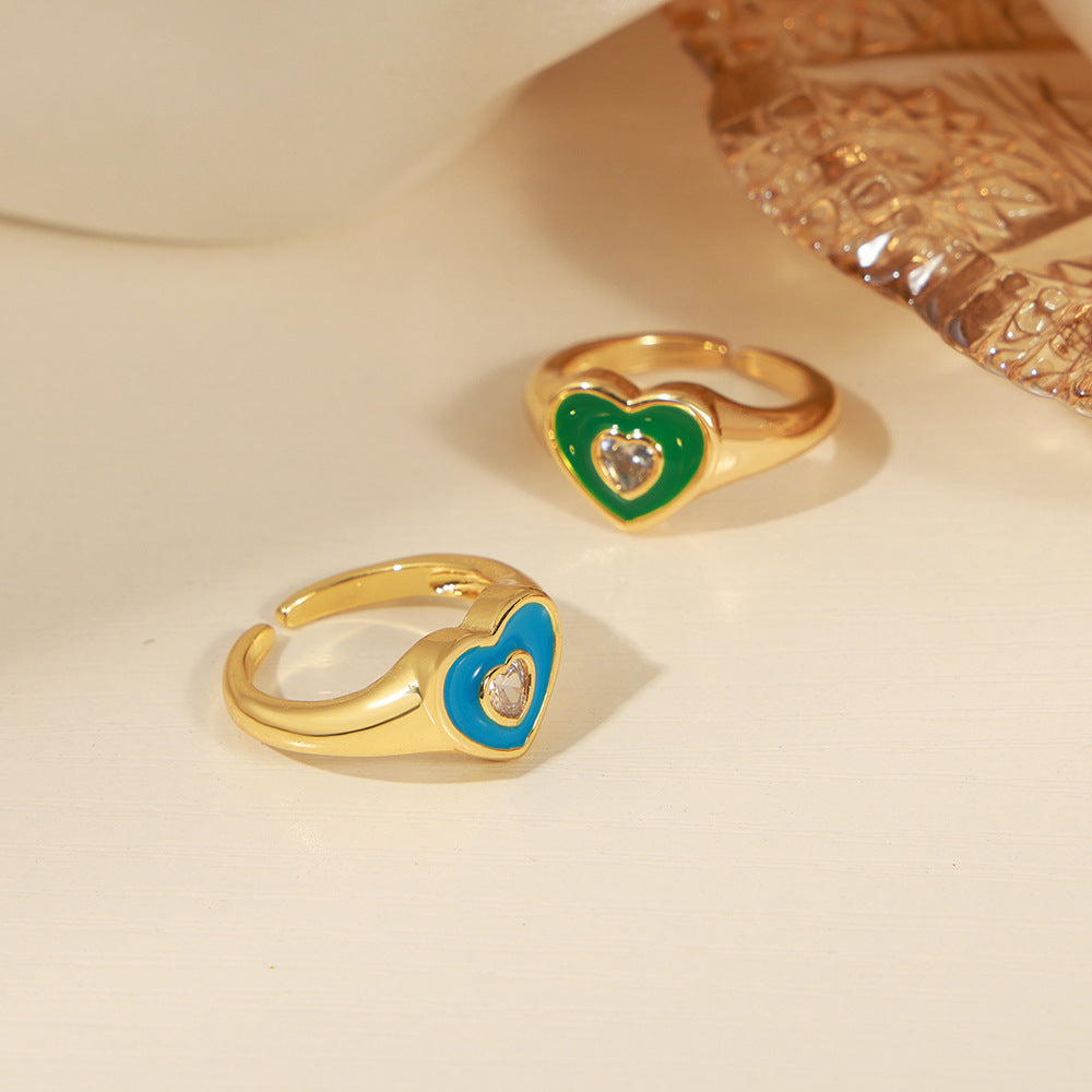 B廠【A733】網紅款砝碼彩釉愛心戒指銅鍍金屬微鑲鋯石指環時尚ins風開口對戒 24.01-2