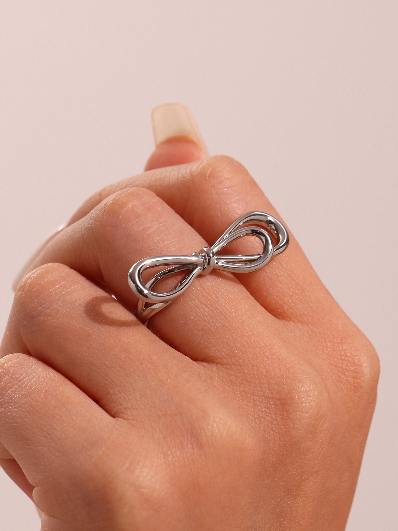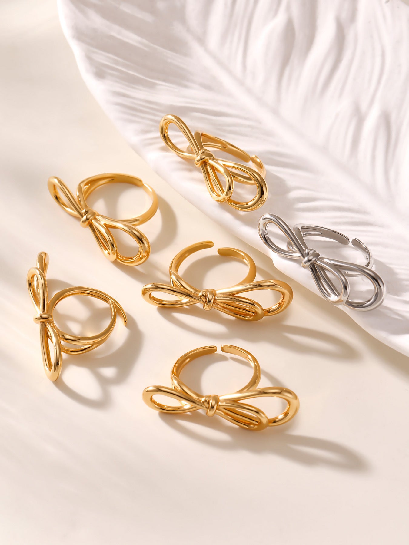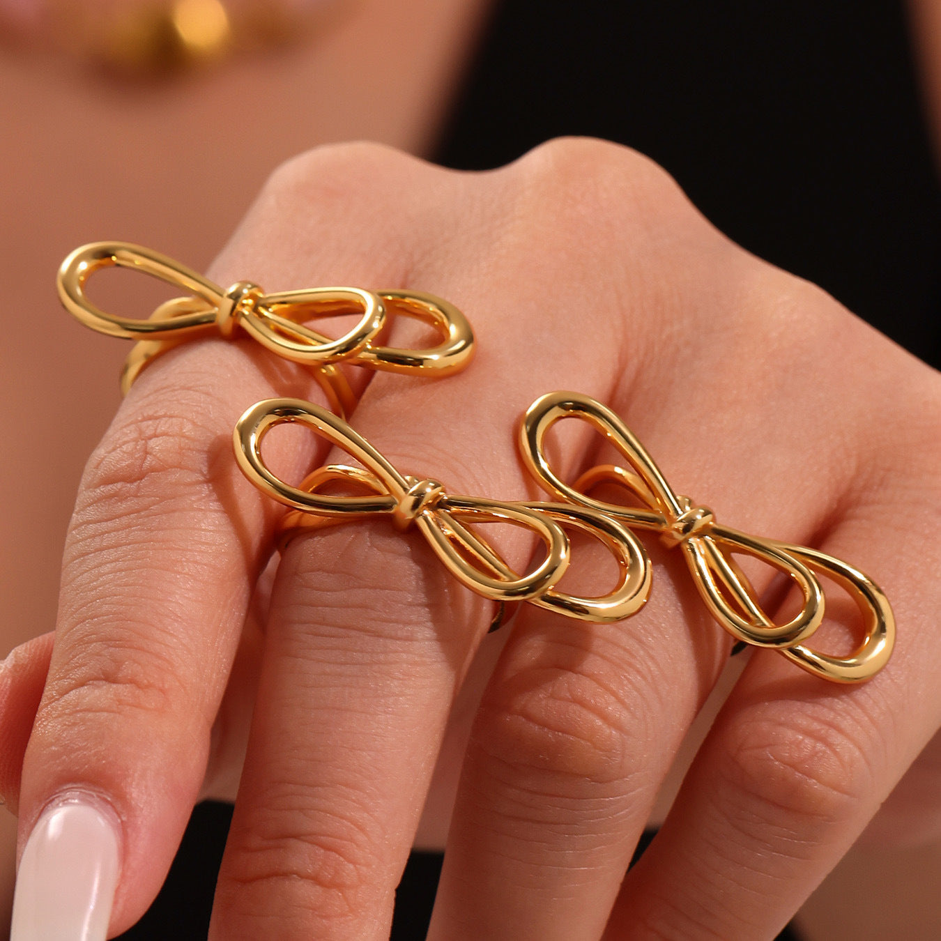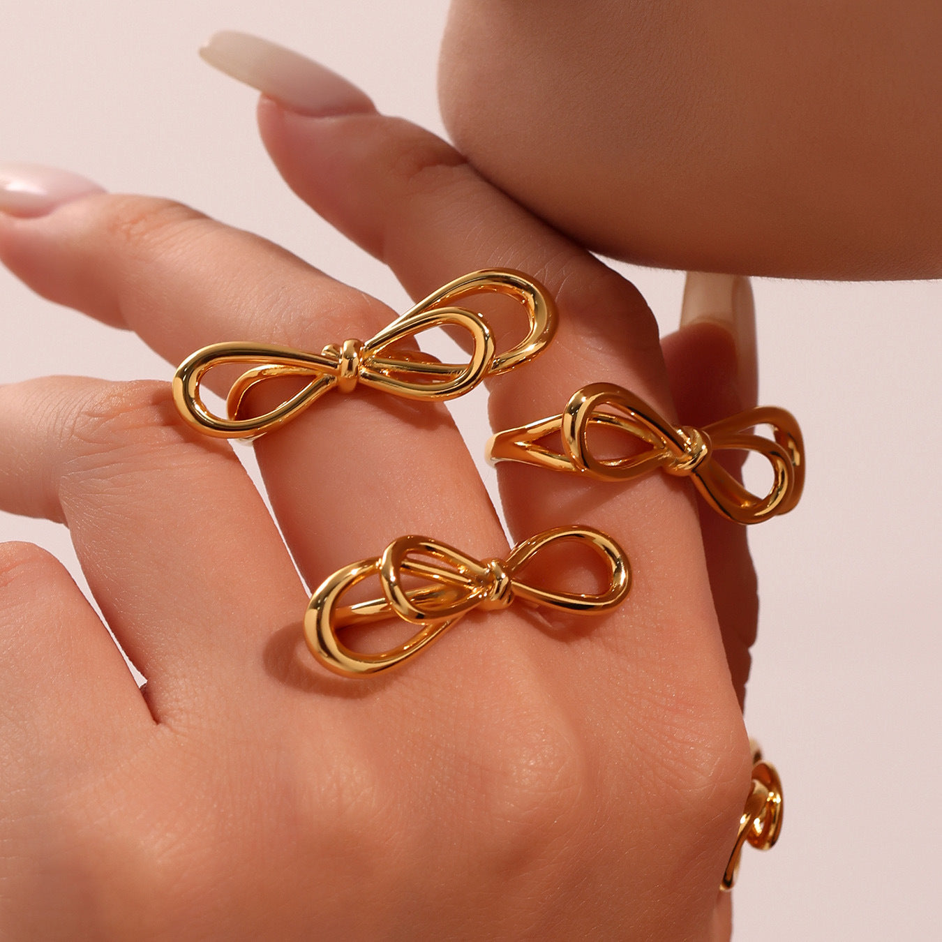 B廠【A776】歐美ins小眾設計蝴蝶結開口戒指不鏽鋼材質18k鍍真金不掉色 25.07-2