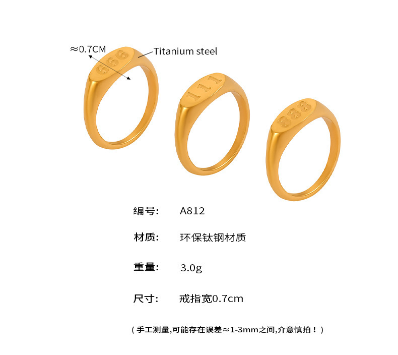 B廠【A812】歐美ins時尚個性簡約指環飾品鈦鋼鍍18K金橢圓數字金色戒指女飾品 24.05-1