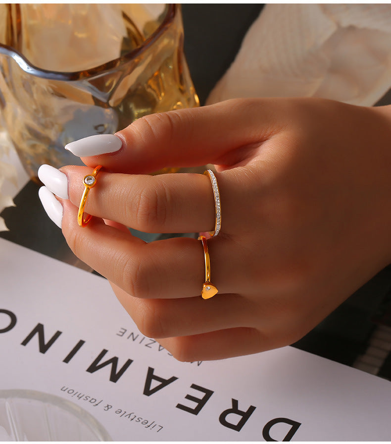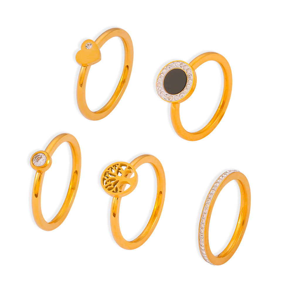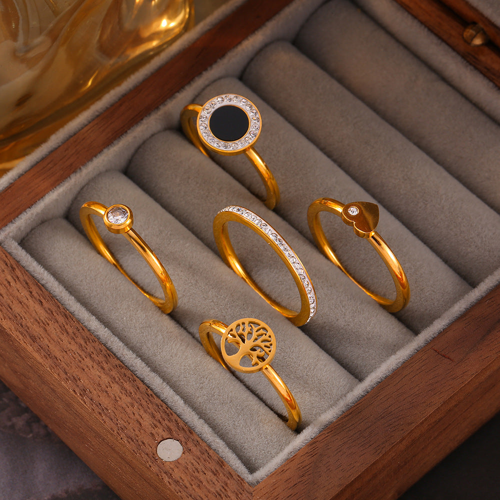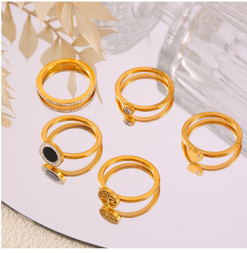 B廠【A818】歐美跨境飾品生命樹光面鈦鋼鍍18真金戒指鍍愛心帶鑽尾戒 24.05-4