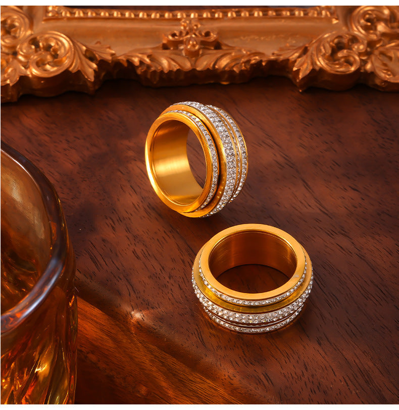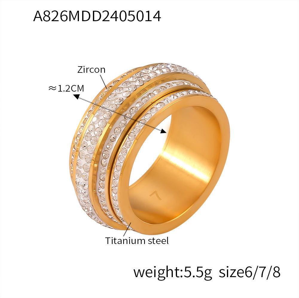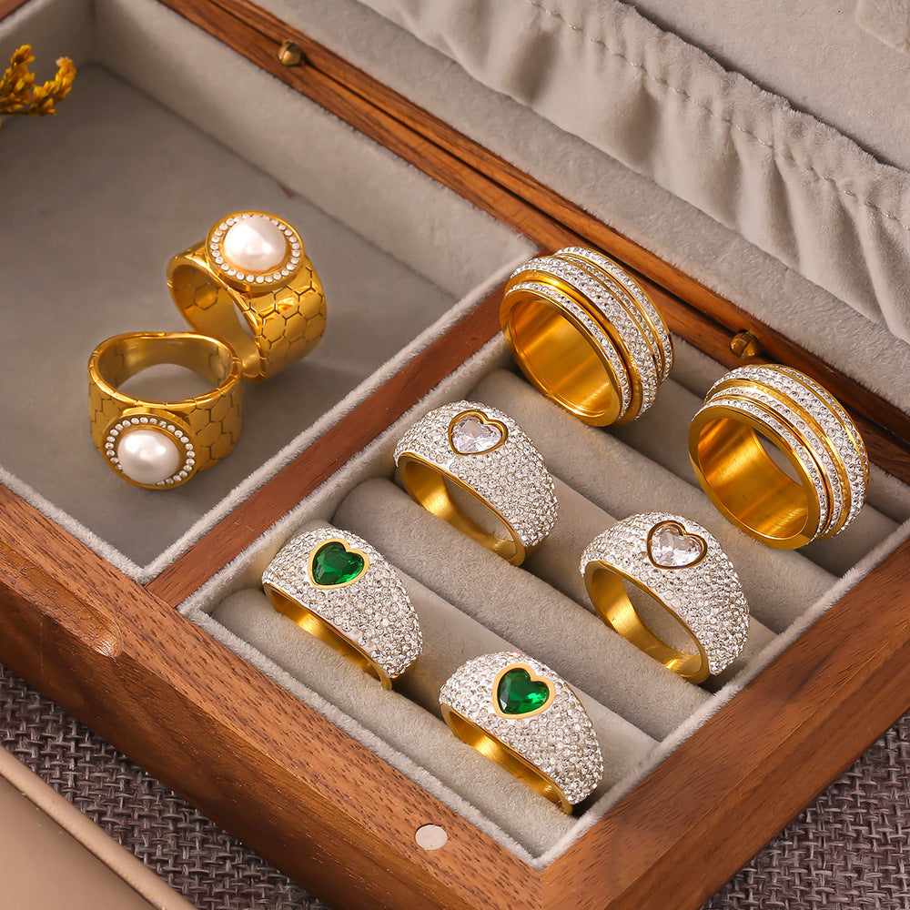 B廠【A826】中東熱銷滿鑽滿天星戒指時尚輕奢鑲嵌貝珠指環幾何鈦鋼鍍金飾品 24.05-4