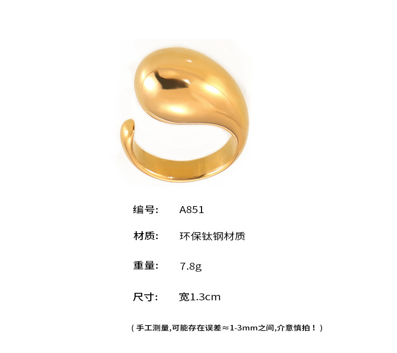 B廠【A851】ins風設計感2024新款鈦鋼簡約戒指開口鈦鋼鍍金不褪色水滴指環女 24.06-1
