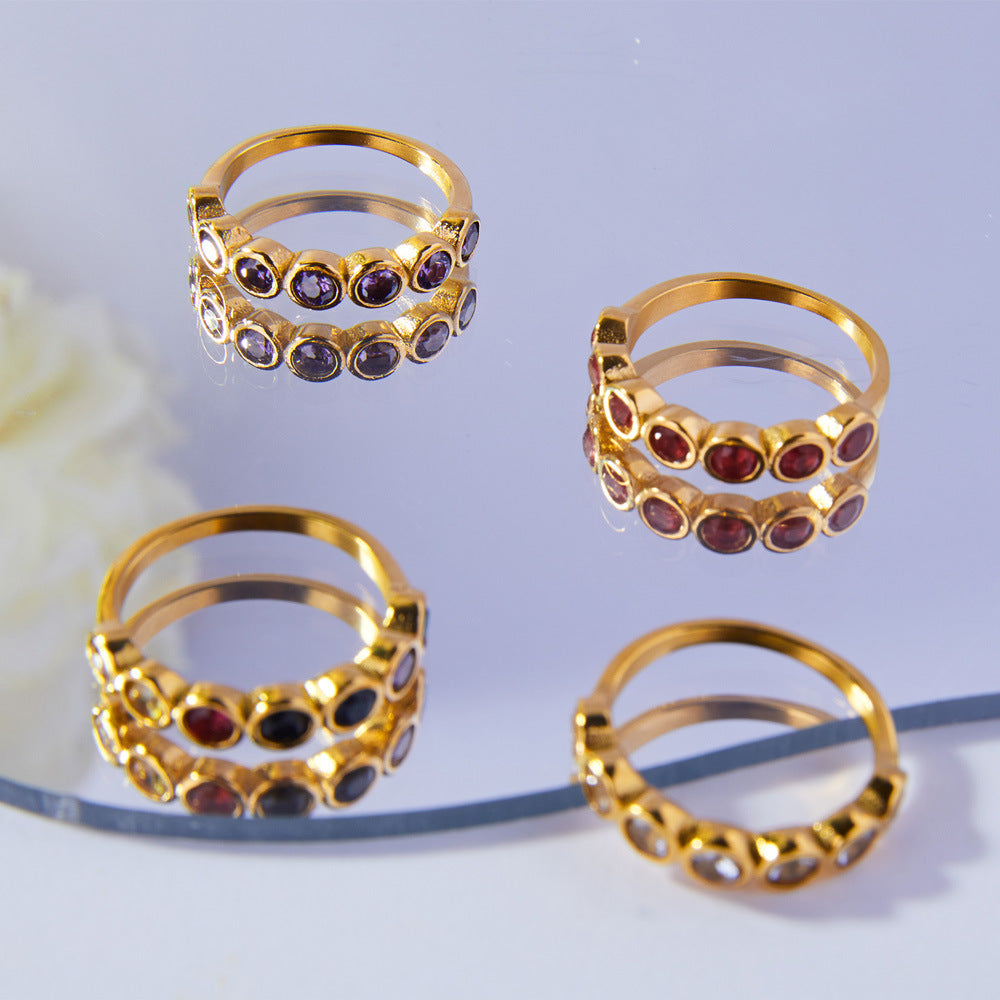 B廠【A872】法式優雅INS風鈦鋼鍍18K金戒指不褪色鑲嵌鋯石指環時尚百搭手飾女 24.06-3