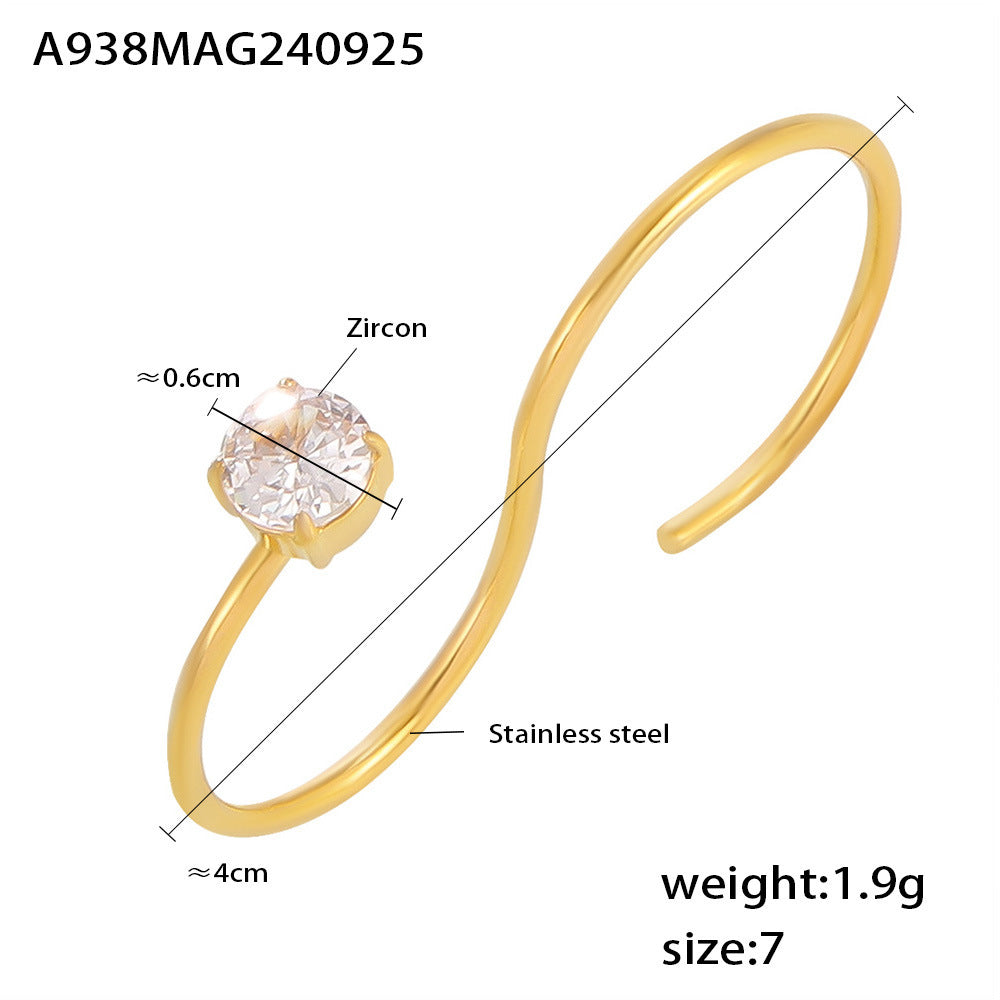B廠【A938】歐美跨國INS風S形雙指纏繞金色3A鋯石戒指不鏽鋼PVD鍍18K金手飾品 24.10-1