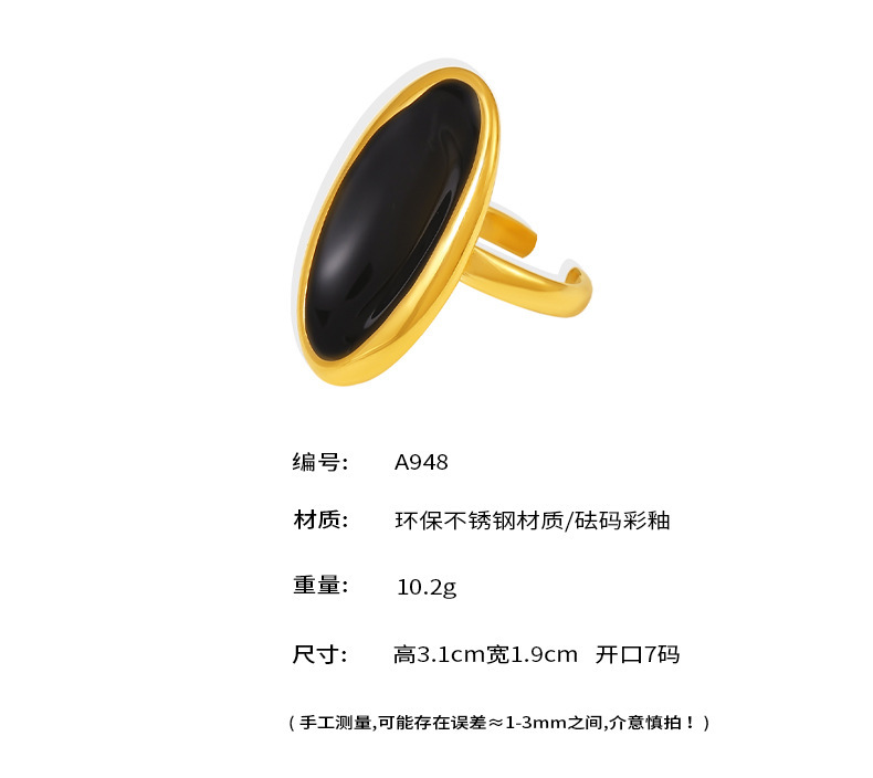 B廠【A948】 法式橢圓開口戒指輕奢感滴油重工鑄造不鏽鋼PVD鍍真金保色 24.11-2