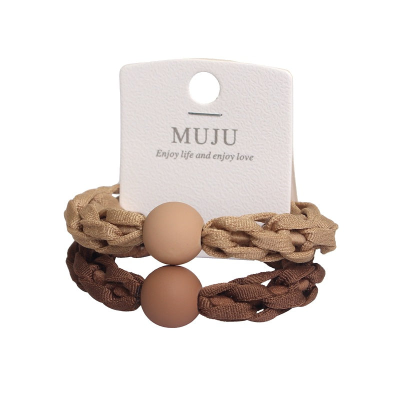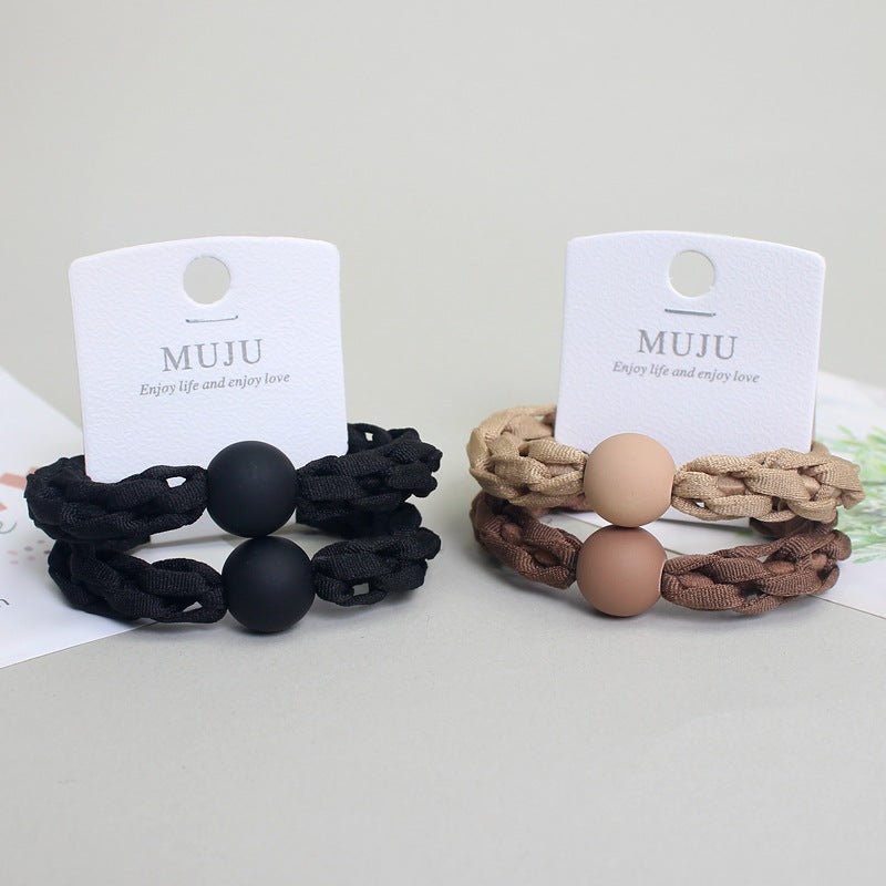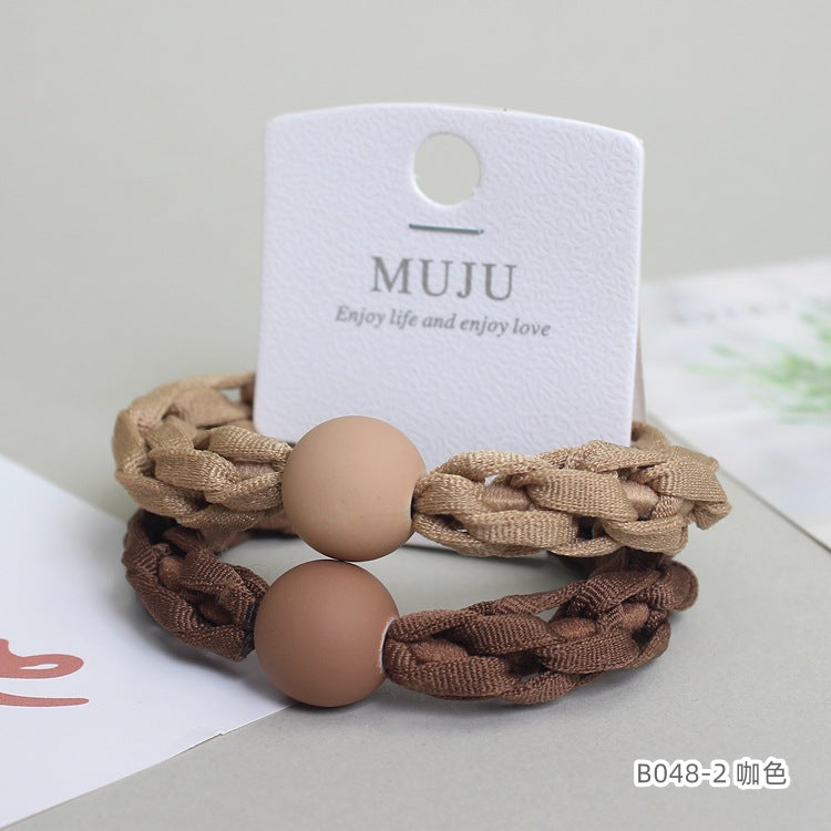 D廠【B048】韓國版簡約髮飾高彈性編織頭繩2條卡吊牌皮筋質感磨砂球馬尾發繩 24.03-2「D廠-單筆結帳需滿,NT$600出貨(不含運費)」