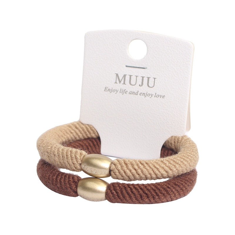 D廠【B075】加粗高彈性金豆髮繩時尚2條卡裝皮筋基本款斜紋髮圈韓版馬尾頭繩 24.03-2「D廠-單筆結帳需滿,NT$600出貨(不含運費)」