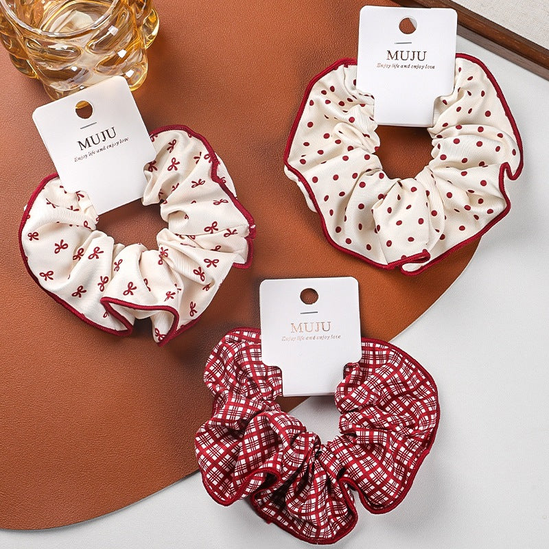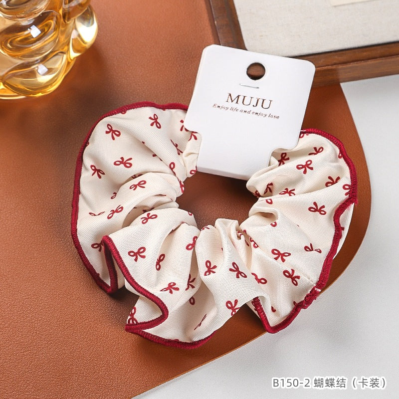 D廠【B150】【卡裝】紅色繫大腸圈輕奢布藝髮圈氛圍感蝴蝶結皮筋丸子頭髮繩 25.05-3「D廠-單筆結帳需滿,NT$600出貨(不含運費)」