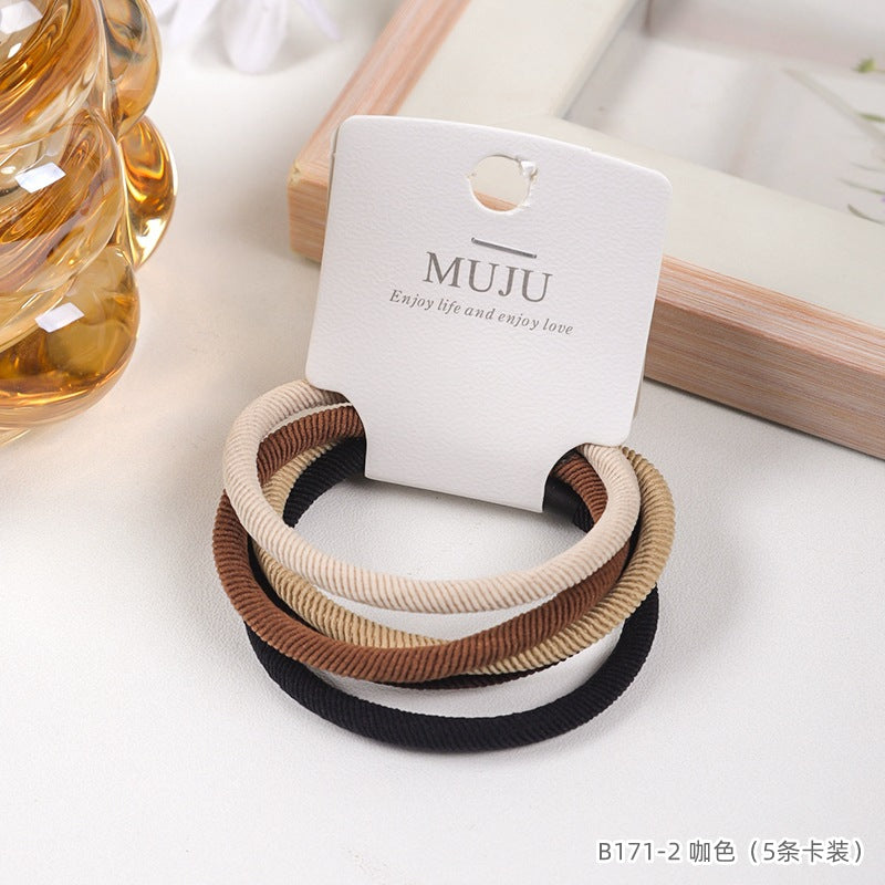 D廠【B171】斜紋高彈性頭繩女實惠5條卡裝皮筋簡約基本款少女髮圈高馬尾髮繩 24.10-2「D廠-單筆結帳需滿,NT$600出貨(不含運費)」