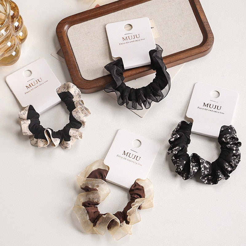 D廠【B258】【卡裝】氣質花邊小腸髮圈時尚褶皺髮繩條碼髮飾少女高馬尾皮筋 25.05-3「D廠-單筆結帳需滿,NT$600出貨(不含運費)」