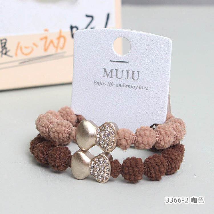 D廠【B366】時尚大豆結吊牌髮飾新款簡約咖色鑲鑽蝴蝶結髮繩2條卡裝皮筋頭繩 24.03-1「D廠-單筆結帳需滿,NT$600出貨(不含運費)」
