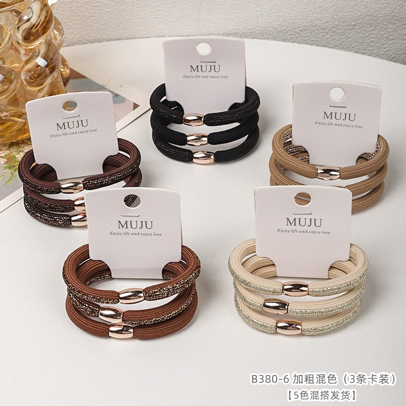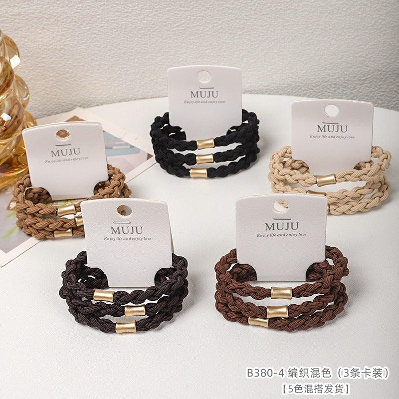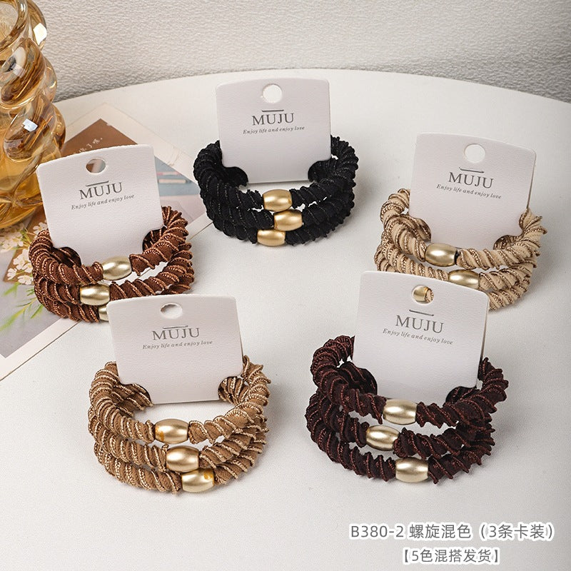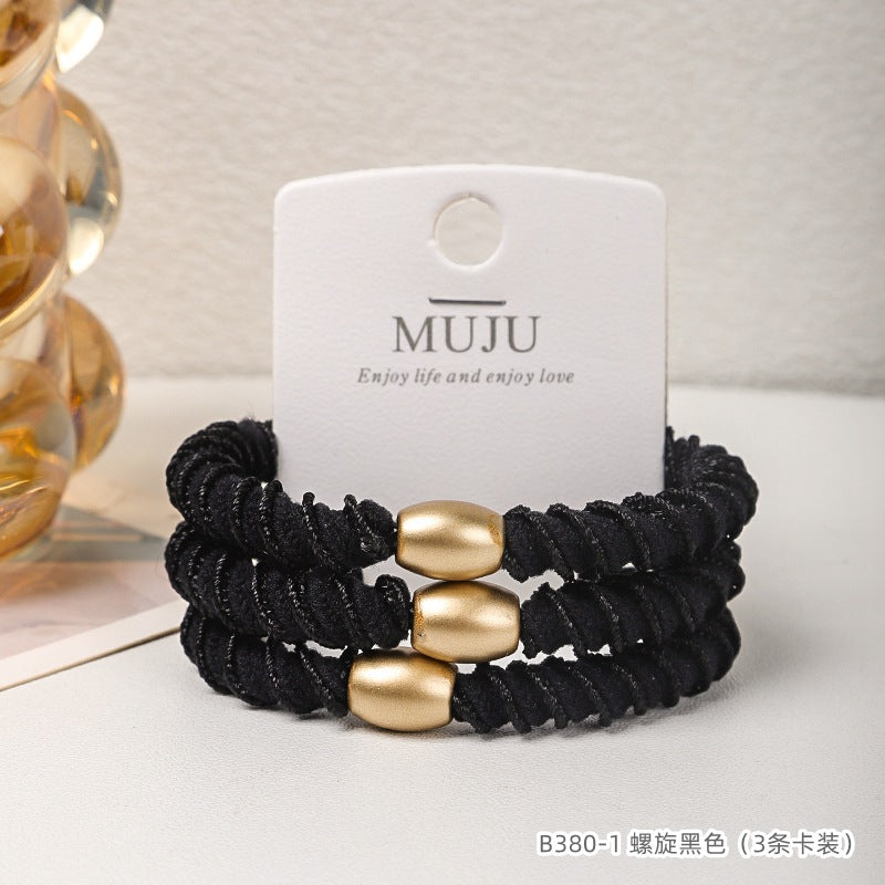 D廠【B380】3條卡裝皮筋高級感金珠髮圈加粗高彈性編織頭繩簡約高馬尾頭繩 25.07-4「D廠-單筆結帳需滿,NT$600出貨(不含運費)」