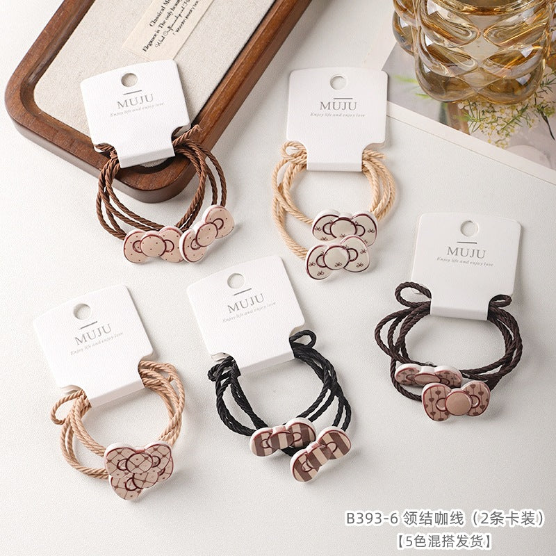 D廠【B393】2條卡裝髮繩高級感小香風髮飾新簡約咖色頭繩打結髮圈高馬尾皮筋 25.07-4「D廠-單筆結帳需滿,NT$600出貨(不含運費)」