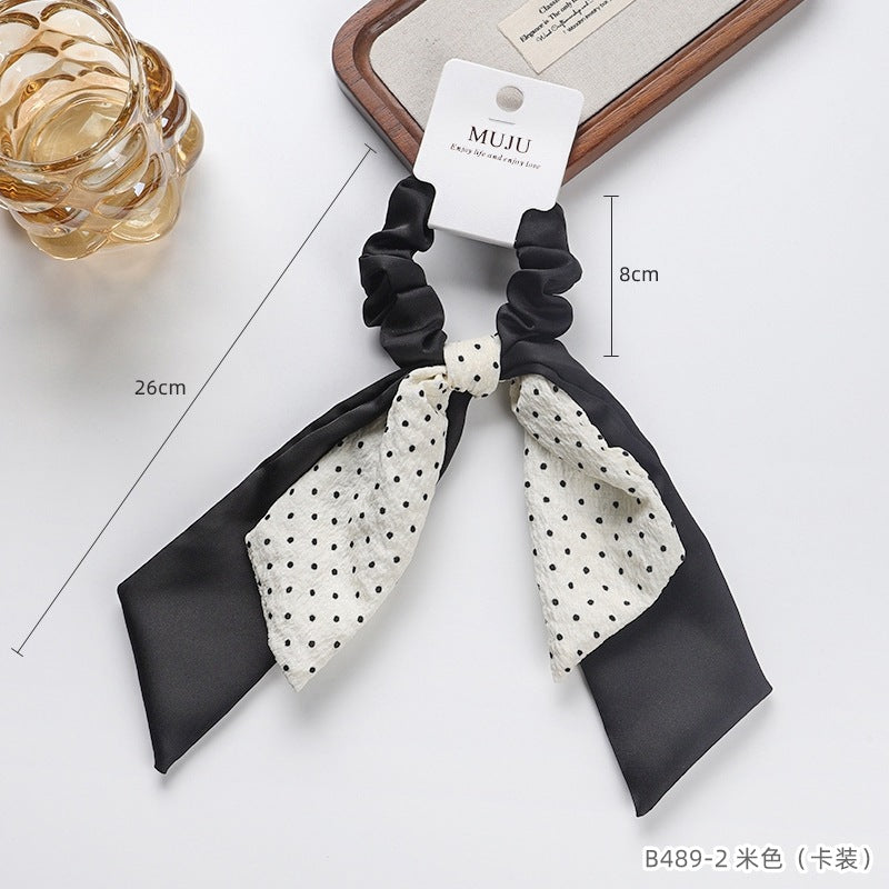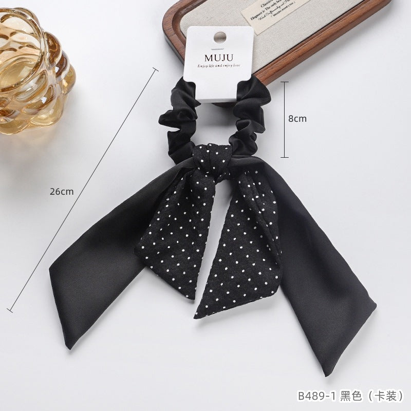 D廠【B489】韓版燕尾飄帶髮圈卡裝高級感大腸圈髮繩時尚波點髮飾皮筋馬尾頭繩 25.11-1「D廠-單筆結帳需滿,NT$600出貨(不含運費)」