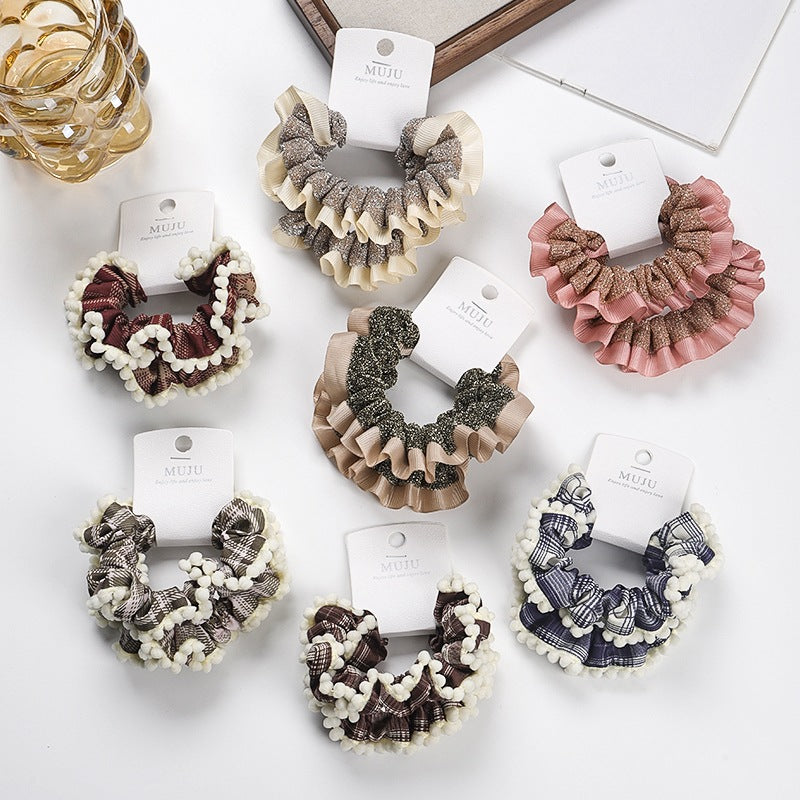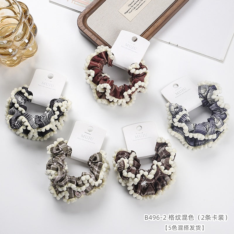 D廠【B496】2條卡裝髮圈時尚寬邊大腸圈髮繩高級感格紋布藝髮飾女高馬尾頭繩 25.11-1「D廠-單筆結帳需滿,NT$600出貨(不含運費)」