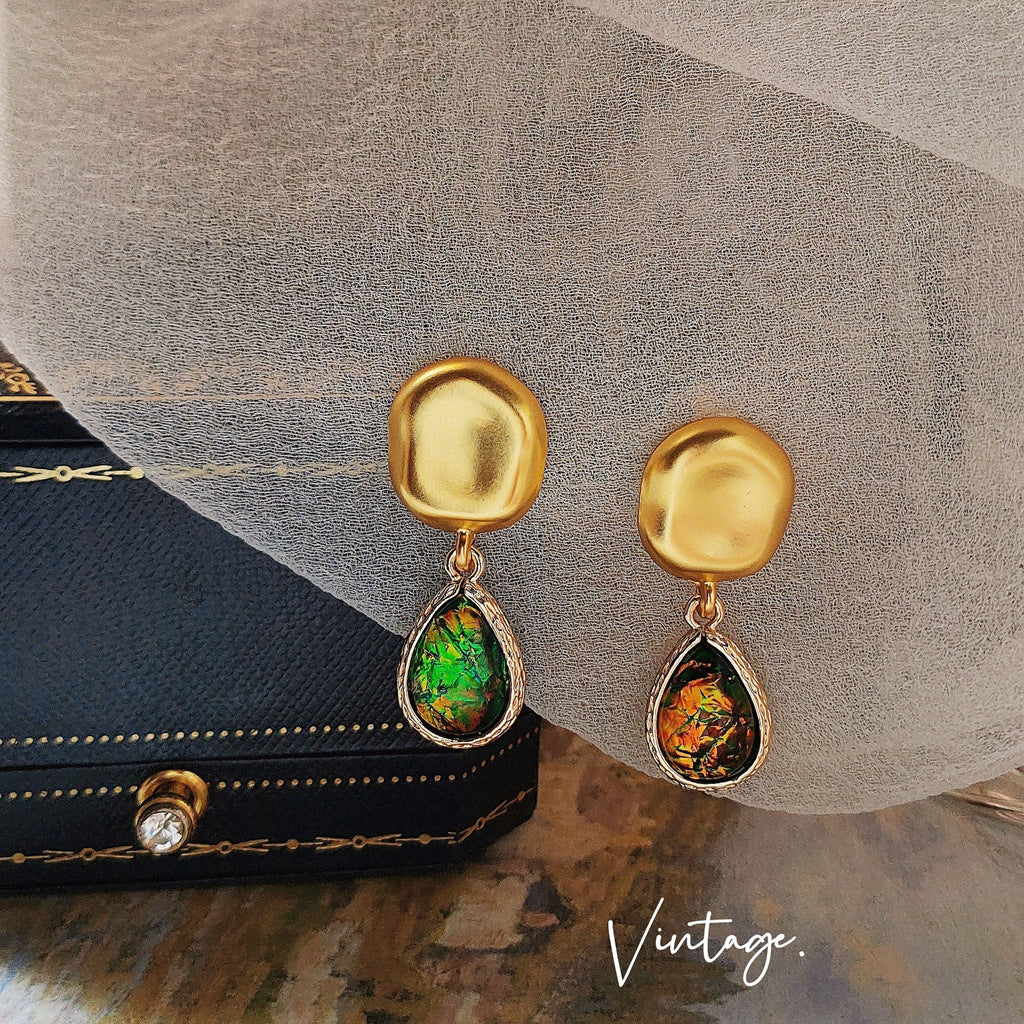 C廠【B715】中古風鮑魚貝斯手輕奢耳環法式高級感復古宮廷風手工水滴氣質耳環 24.08-4
