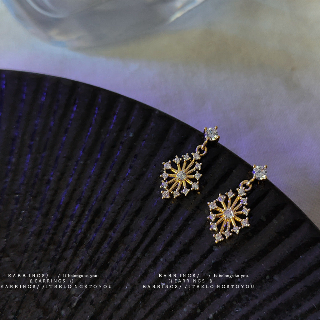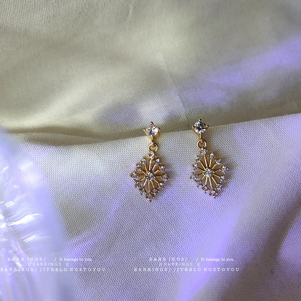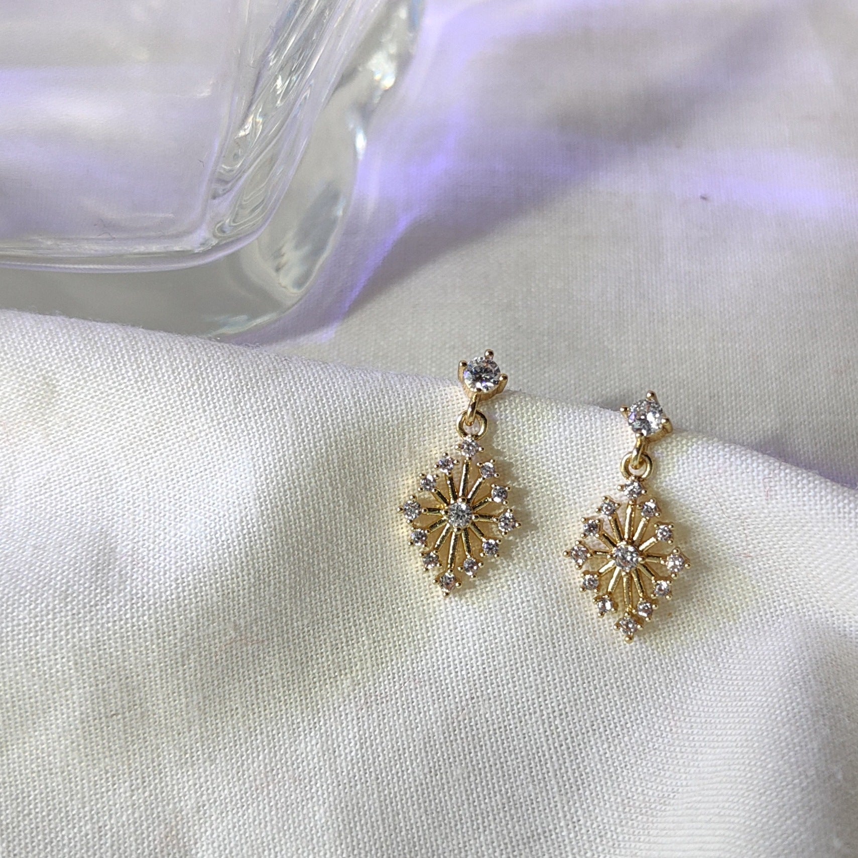 C廠【C-161】中古風微鑲鋯石菱形設計感耳環法式復古宮廷風線條花蕊形幾何耳飾 24.04-2