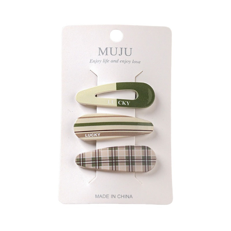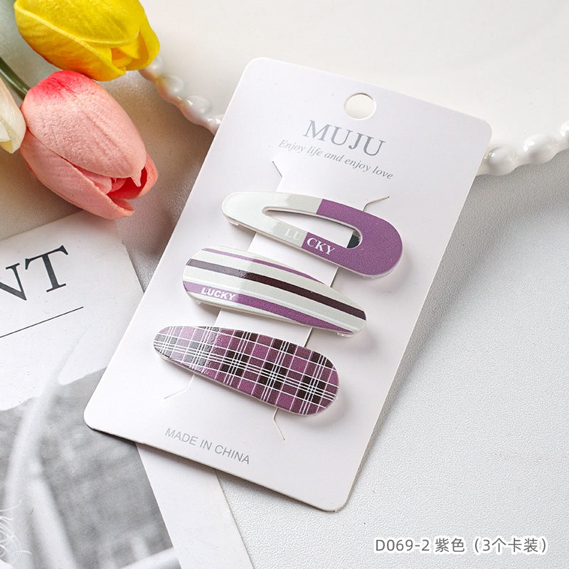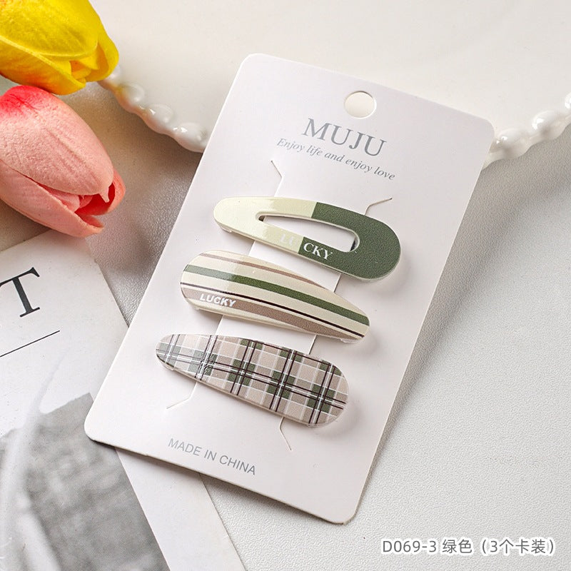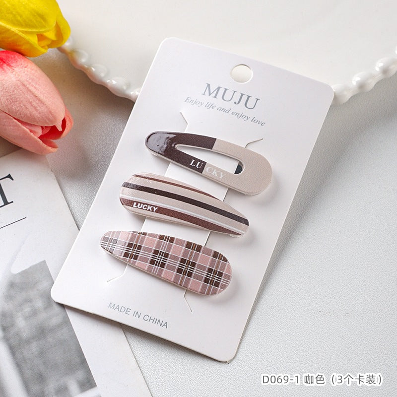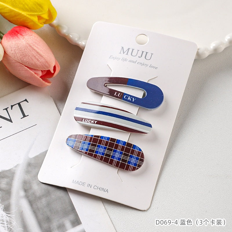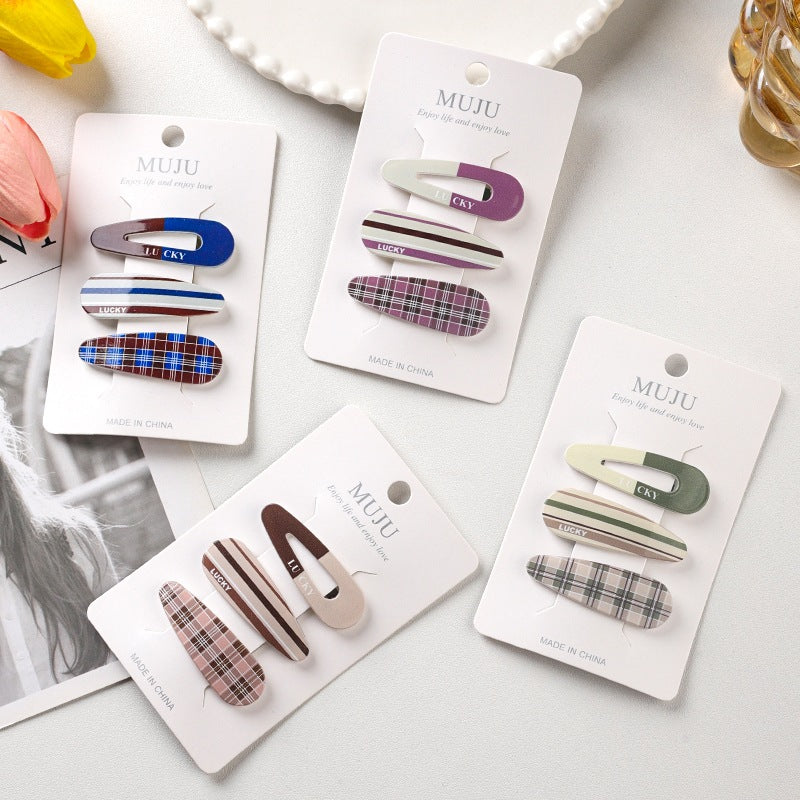 D廠【D069】3個卡裝女孩髮夾甜美格紋BB夾LUCKY髮卡套裝髮飾韓版側邊劉海夾 25.07-1「D廠-單筆結帳需滿,NT$600出貨(不含運費)」