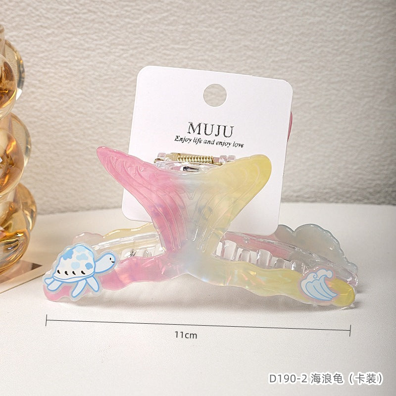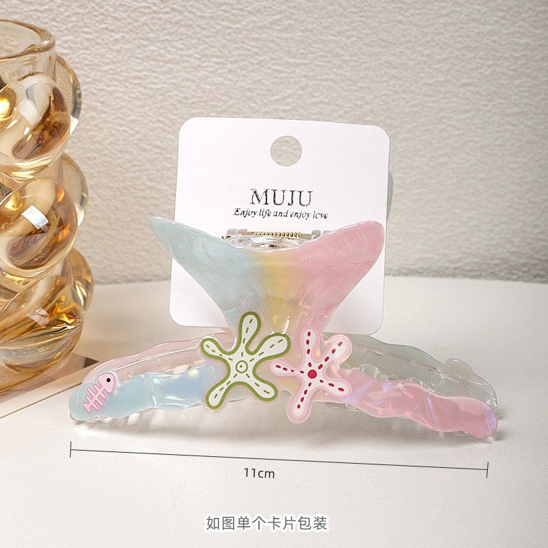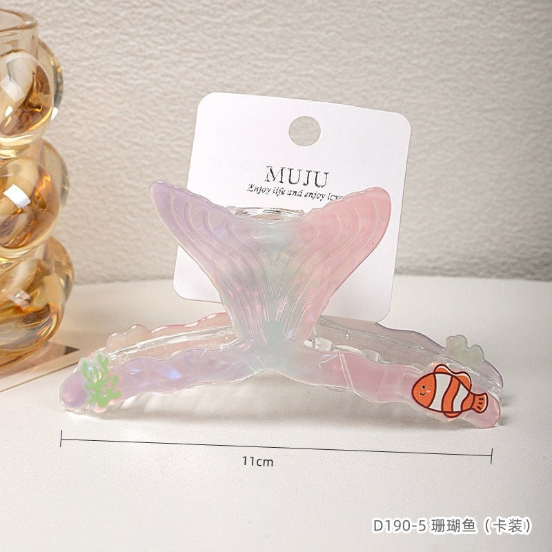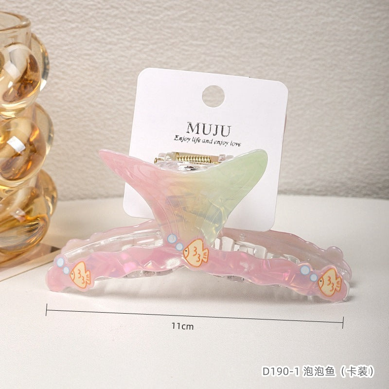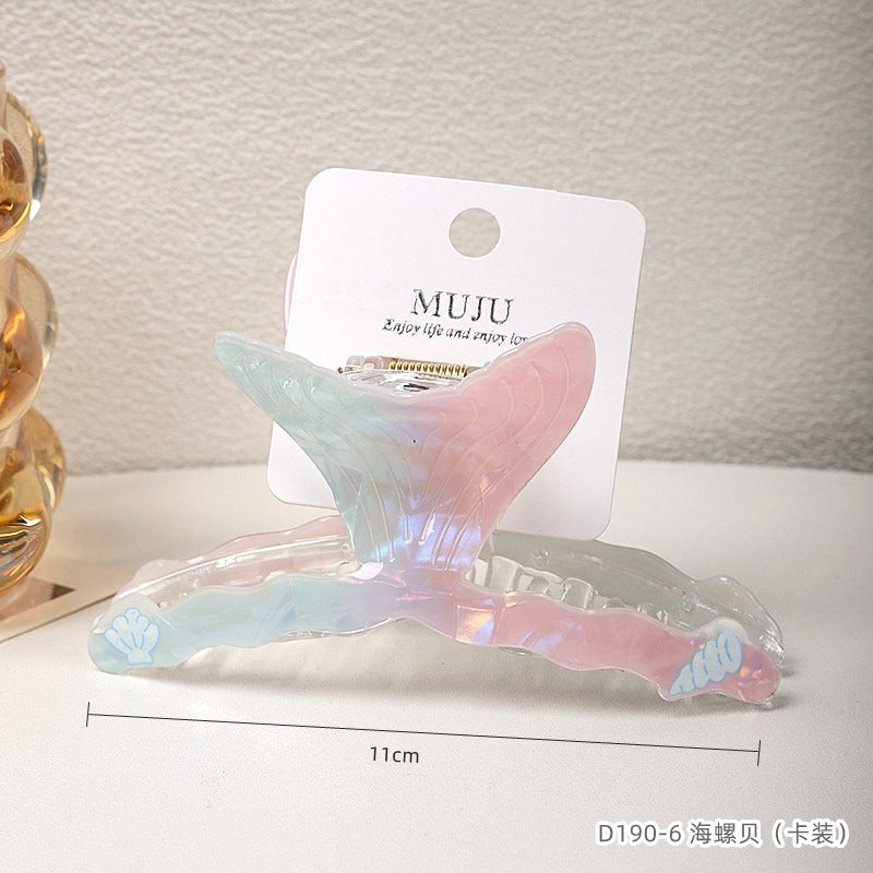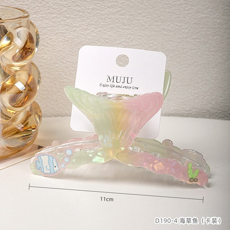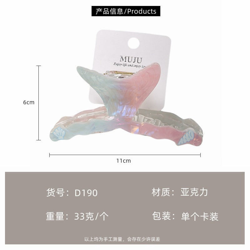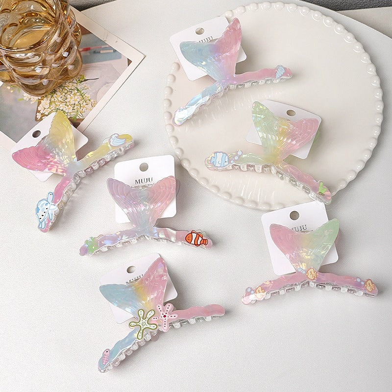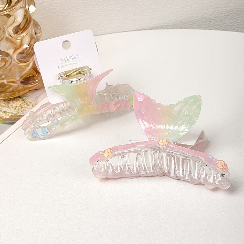 D廠【D190】美人魚尾抓夾甜美少女髮夾高級感卡裝髮飾兒童壓克力後腦勺鯊魚夾 25.08-3
