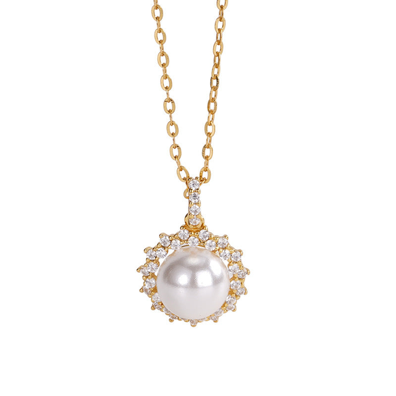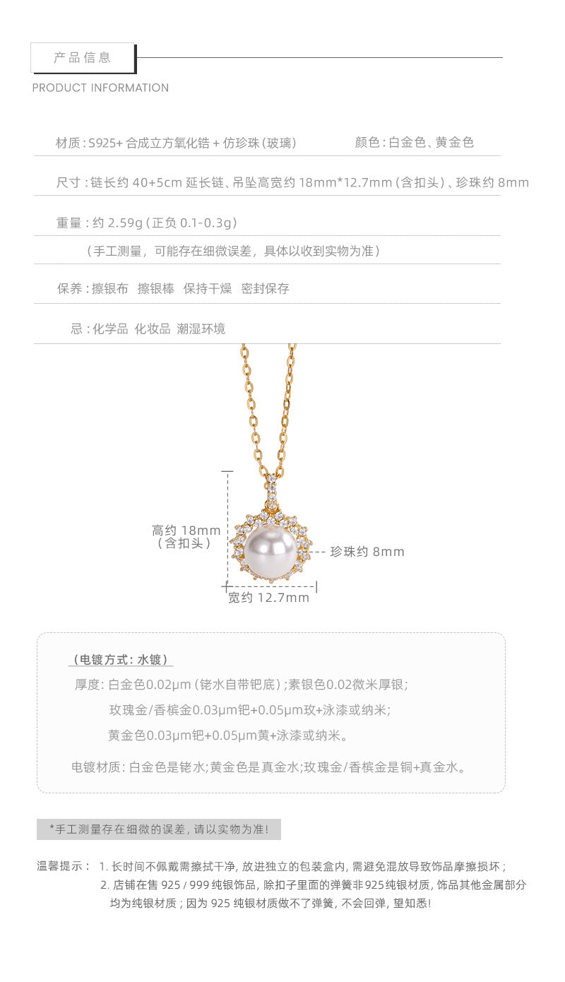 F廠【DQ0028N】S925純銀施家仿珍珠太陽花項鍊女高級感小眾鋯石鎖骨鏈潮 25.06-4