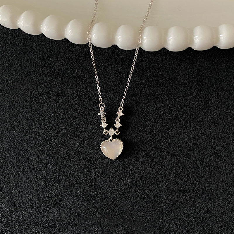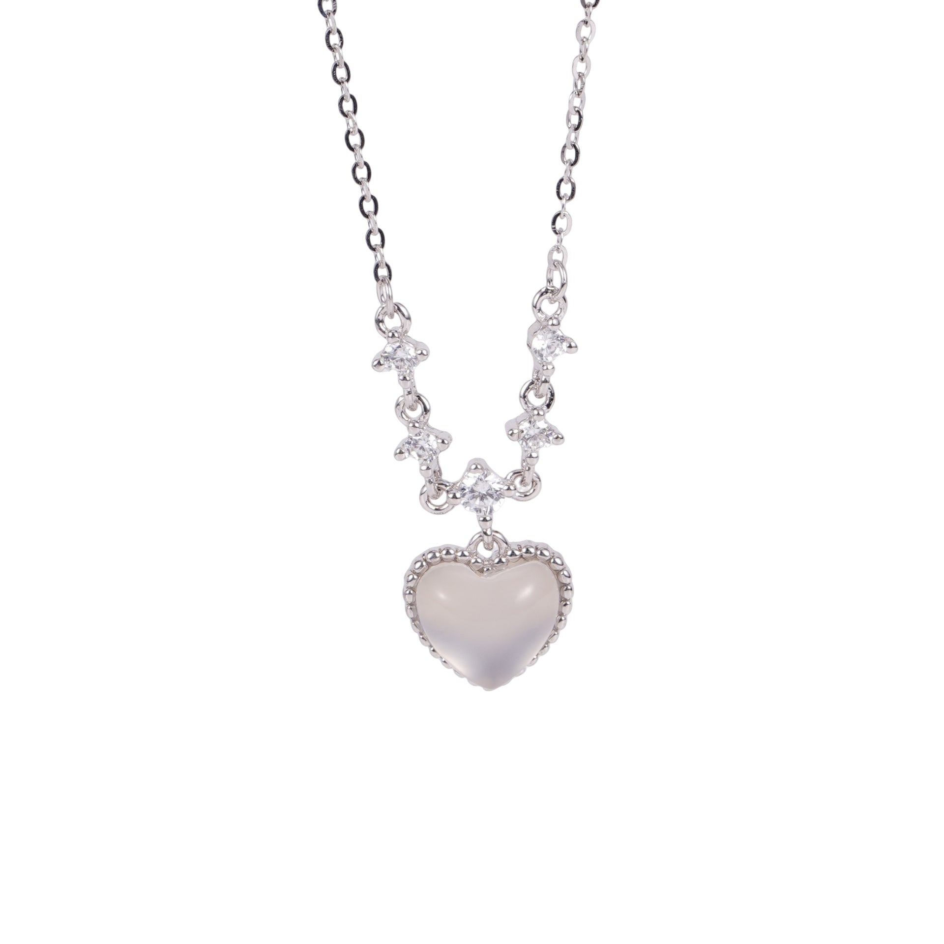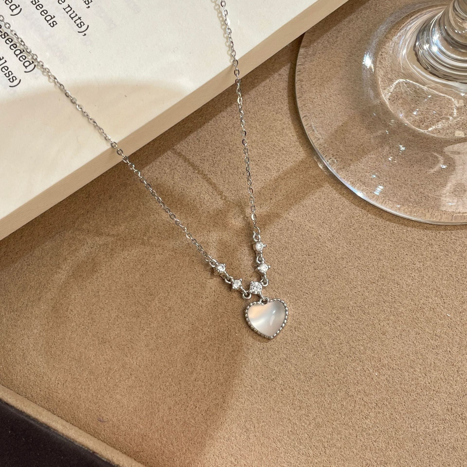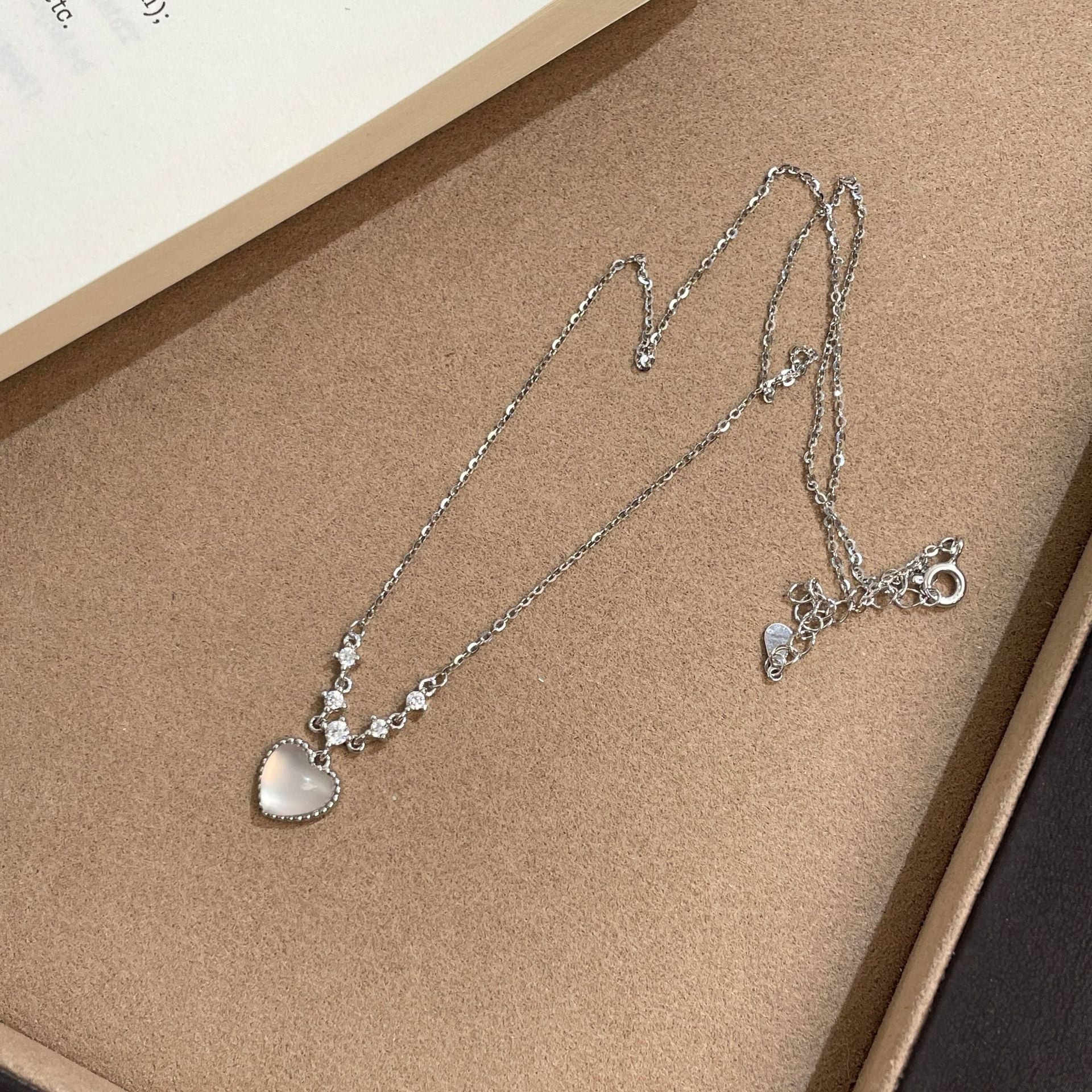 F廠【DQ0037N】S925純銀天然白玉髓愛心項鍊女輕奢小眾高級感閃鋯百搭鎖骨鏈 25.09-3