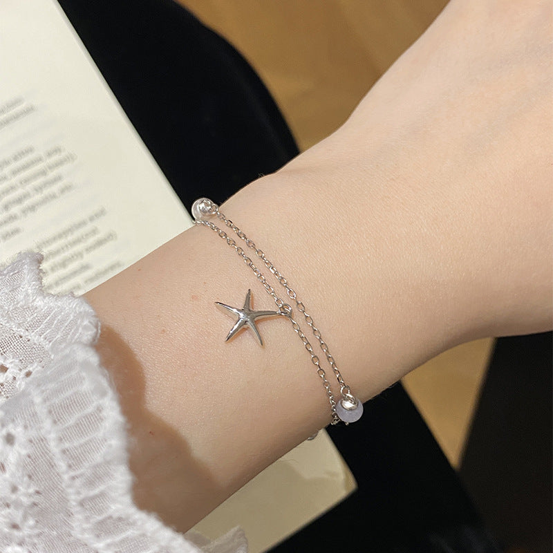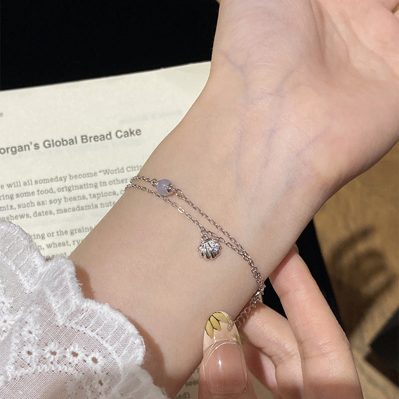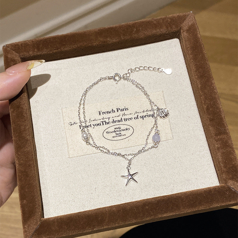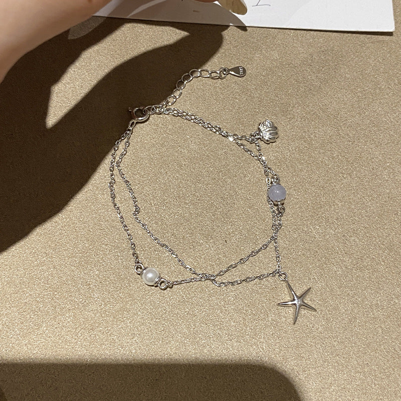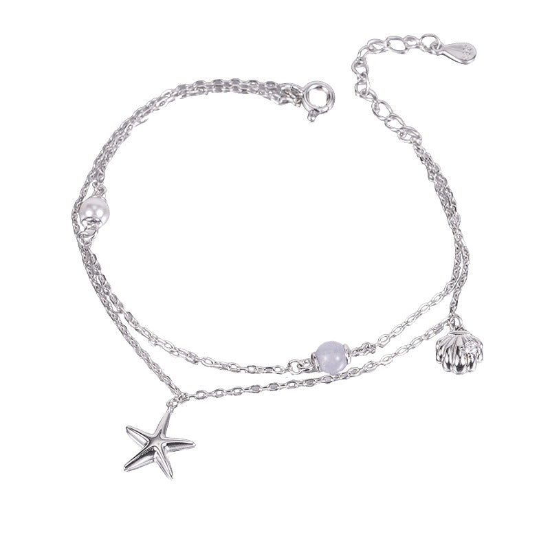 F廠【DQ0045S】原創設計925純銀海藍寶海星貝殼手鍊女韓版ins仿珍珠百搭手飾 25.09-3