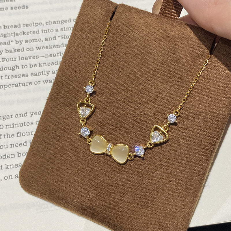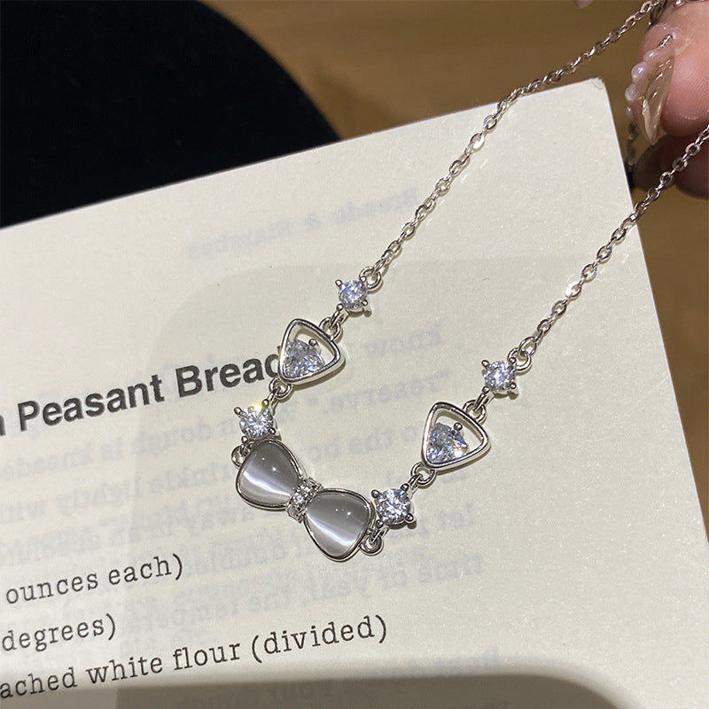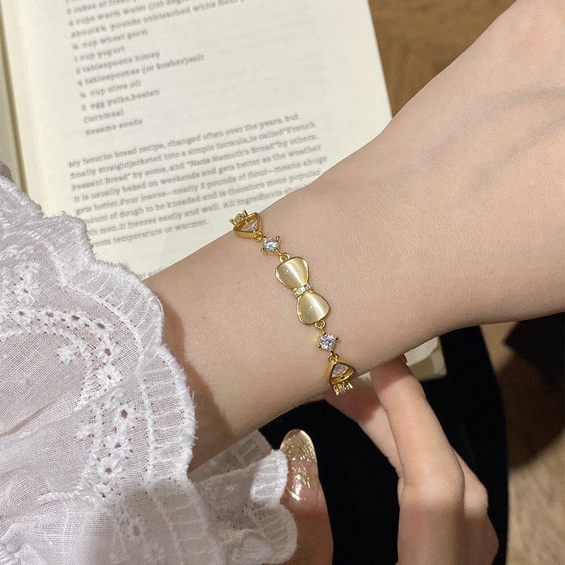 F廠【DQ0048S】法式輕奢蝴蝶結仿貓眼石手鍊S925純銀精緻閃銀色時尚手飾女 25.07-4