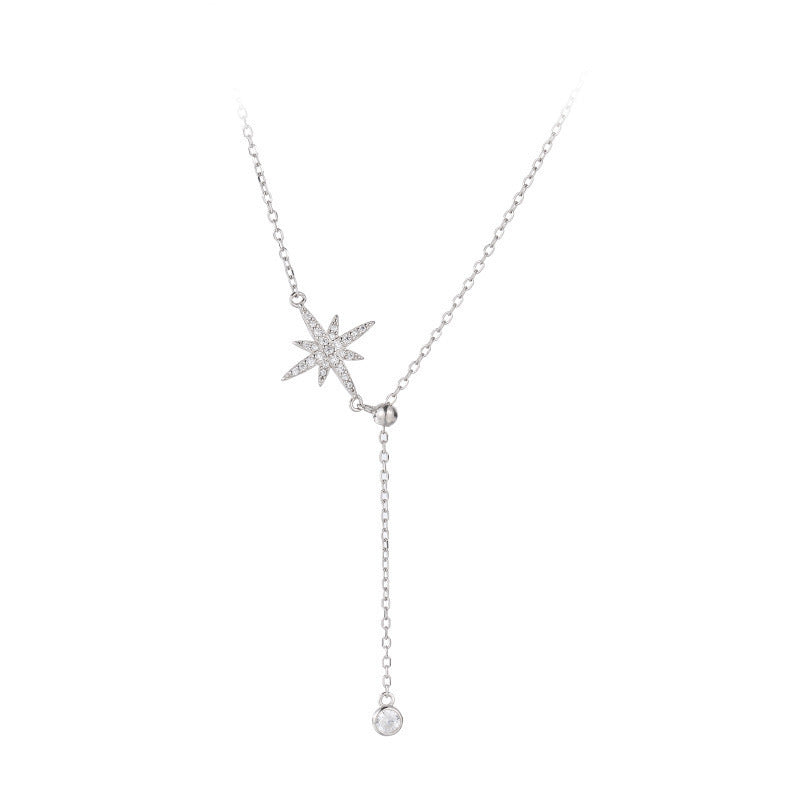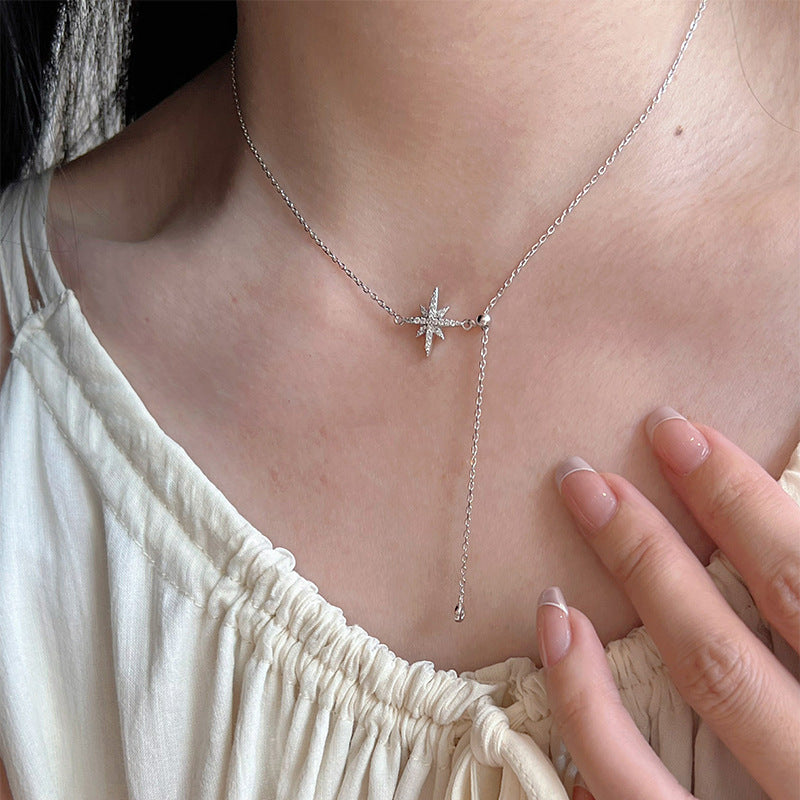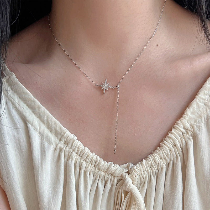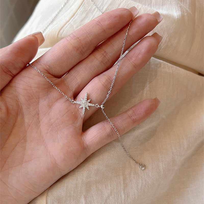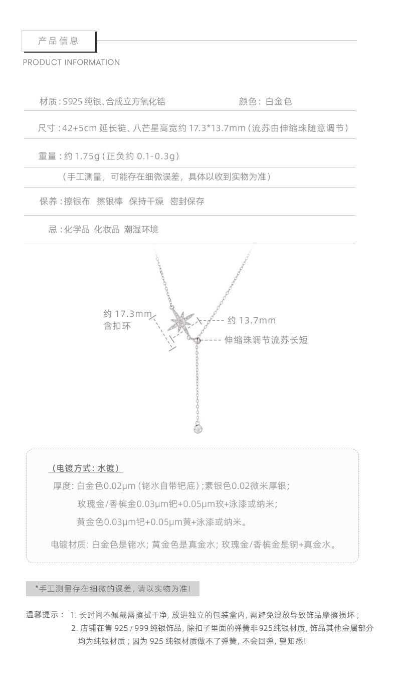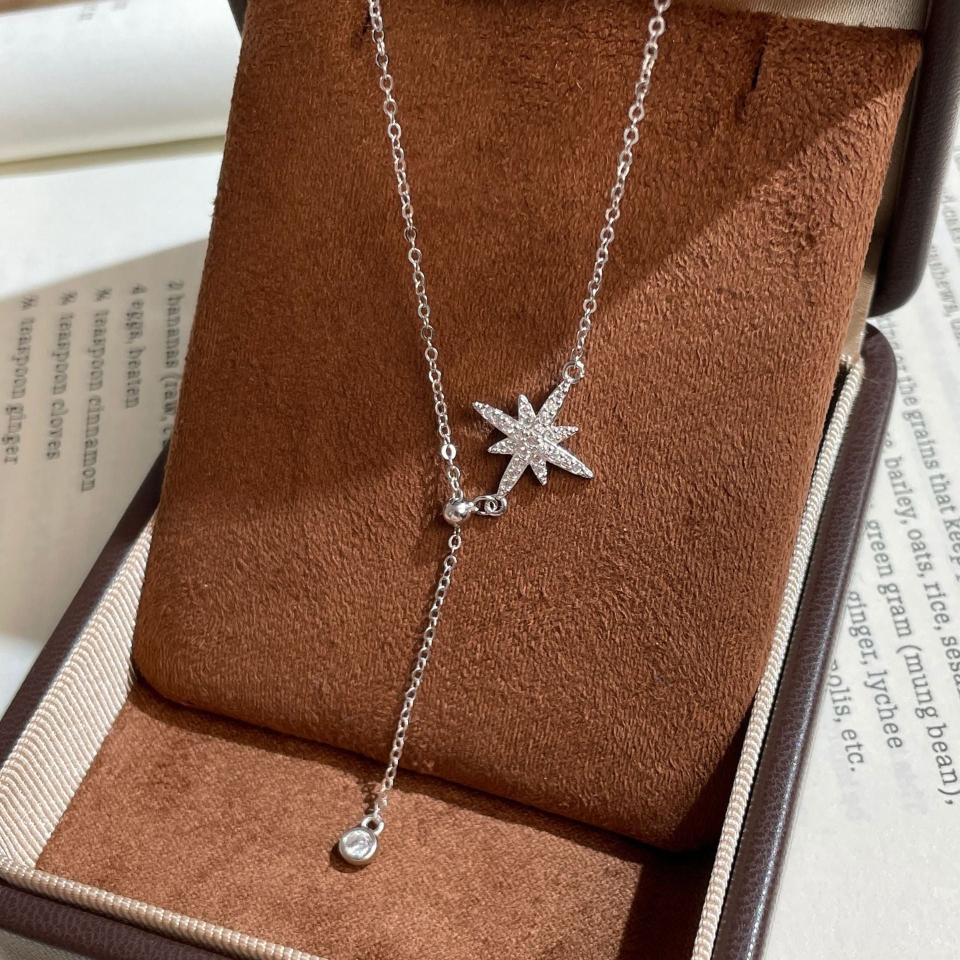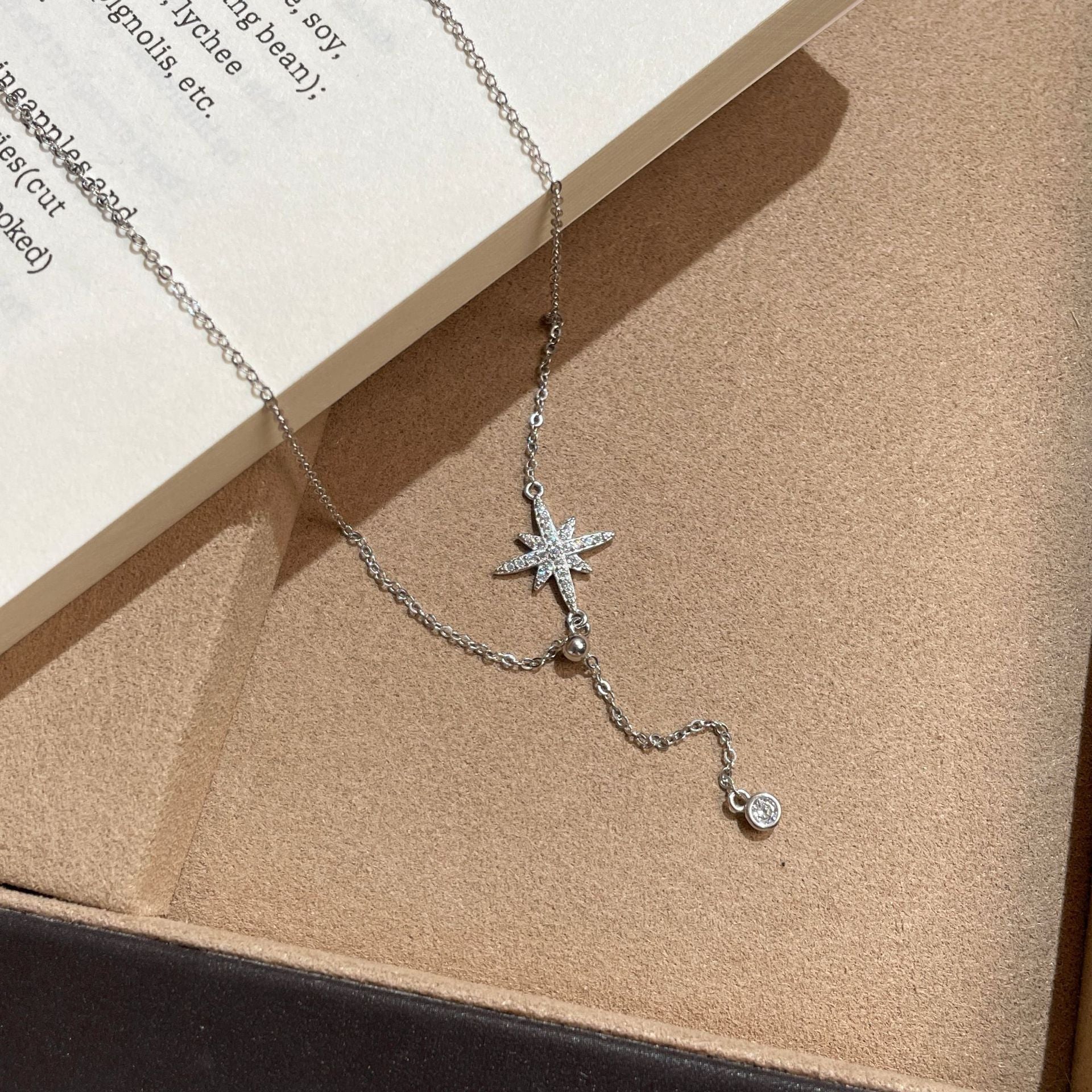 F廠【DQ0050N】S925純銀精緻八芒星項鍊女小眾設計高級感鋯石流蘇鎖骨鍊頸鍊 25.09-1