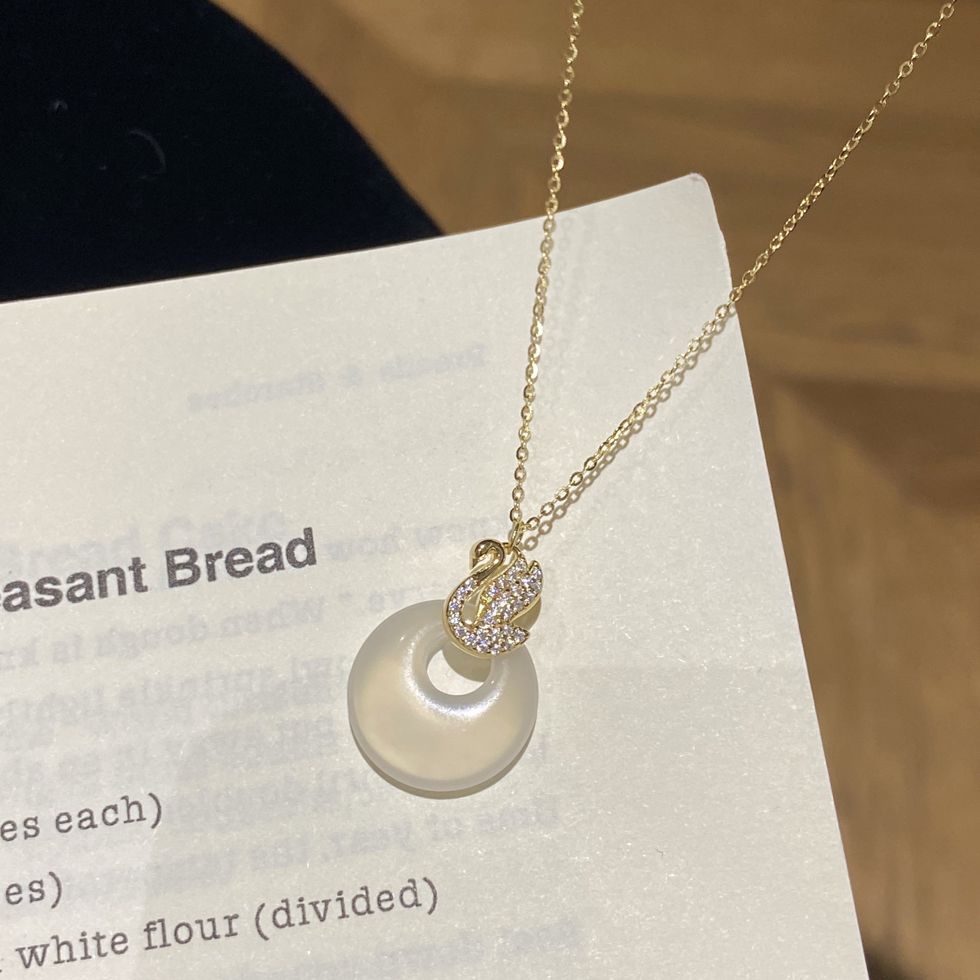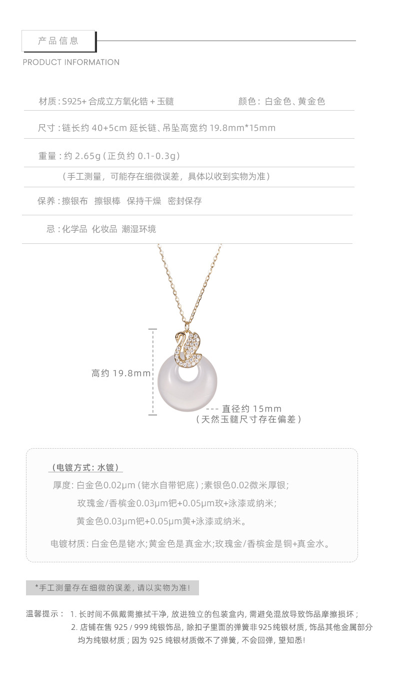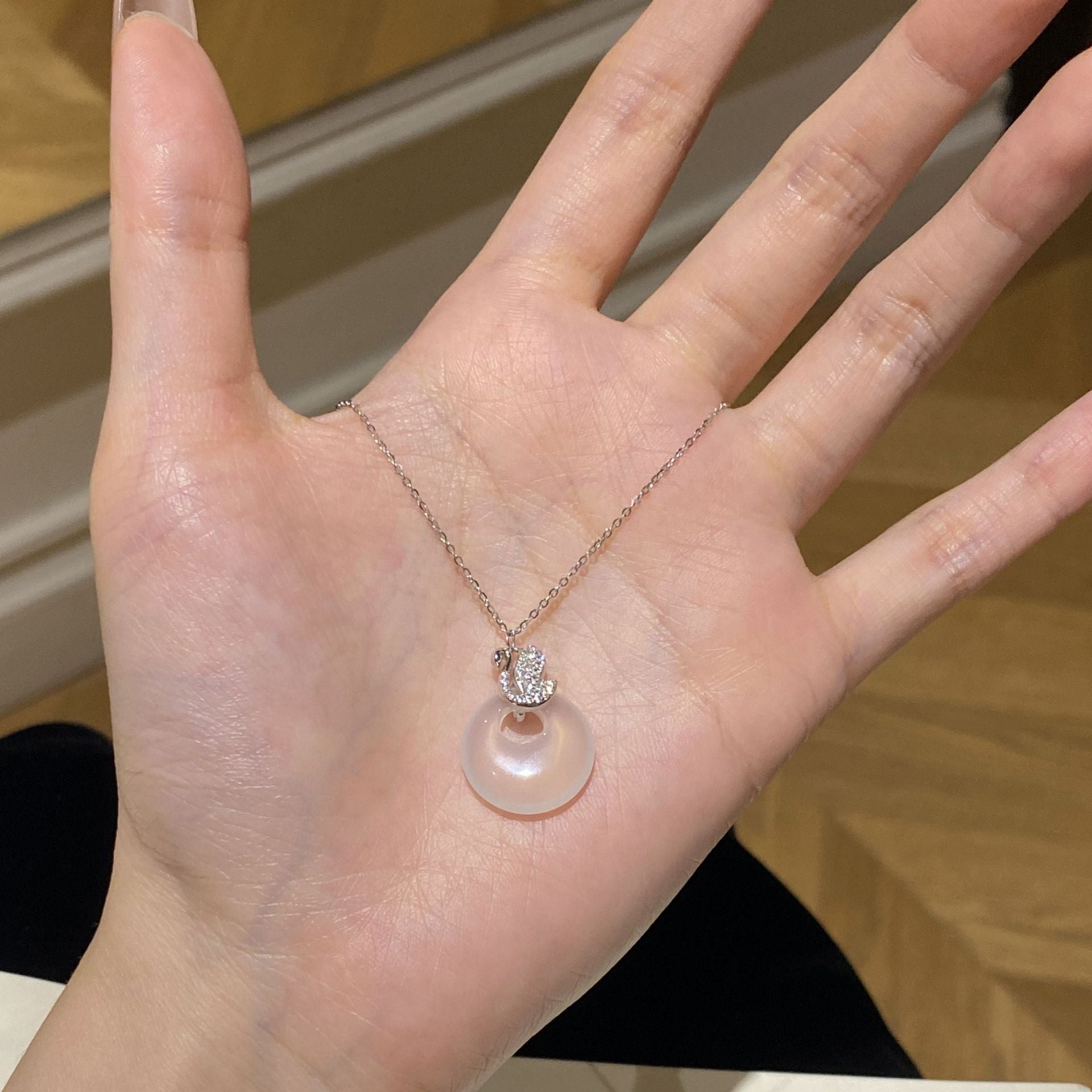 F廠【DQ0074N】S925純銀新中式國風如意平安扣項鍊女優雅小天鵝白玉髓鎖骨鏈 25.10-4