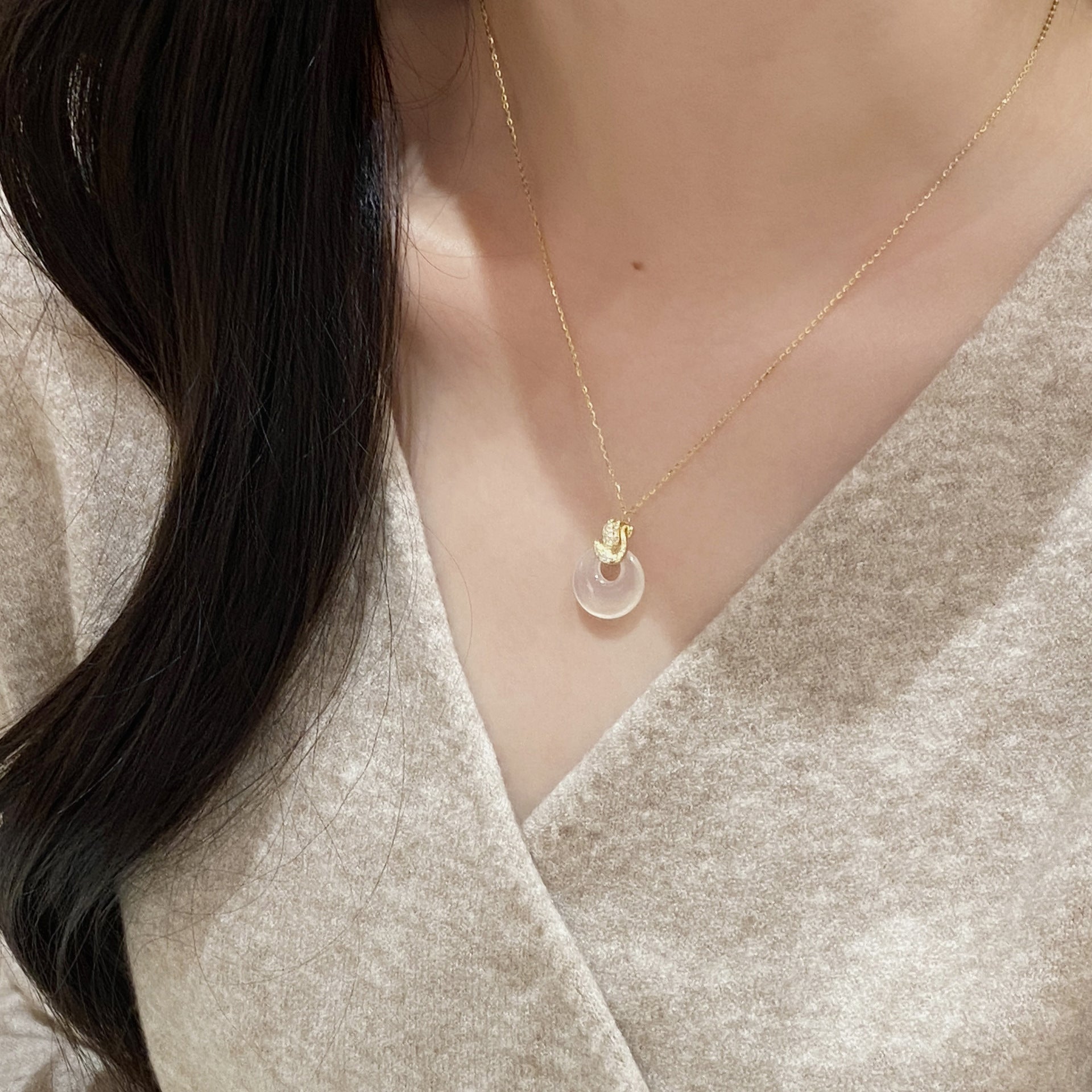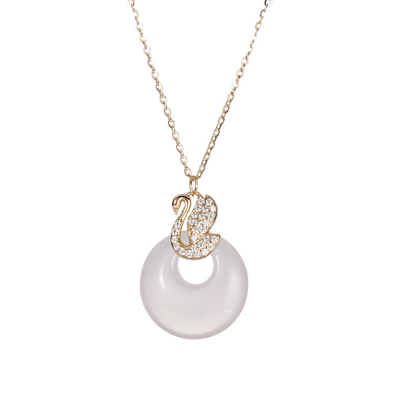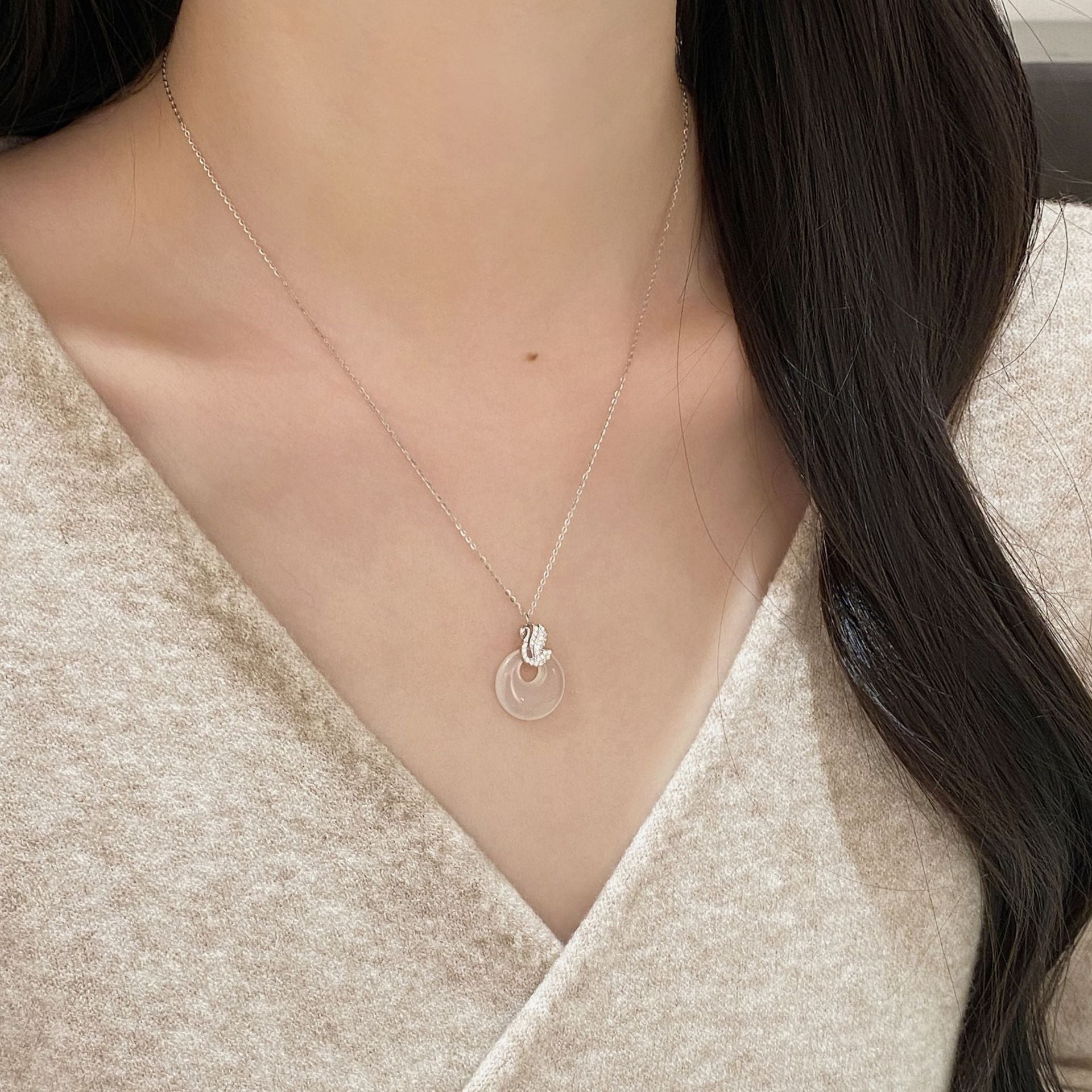F廠【DQ0074N】S925純銀新中式國風如意平安扣項鍊女優雅小天鵝白玉髓鎖骨鏈 25.10-4
