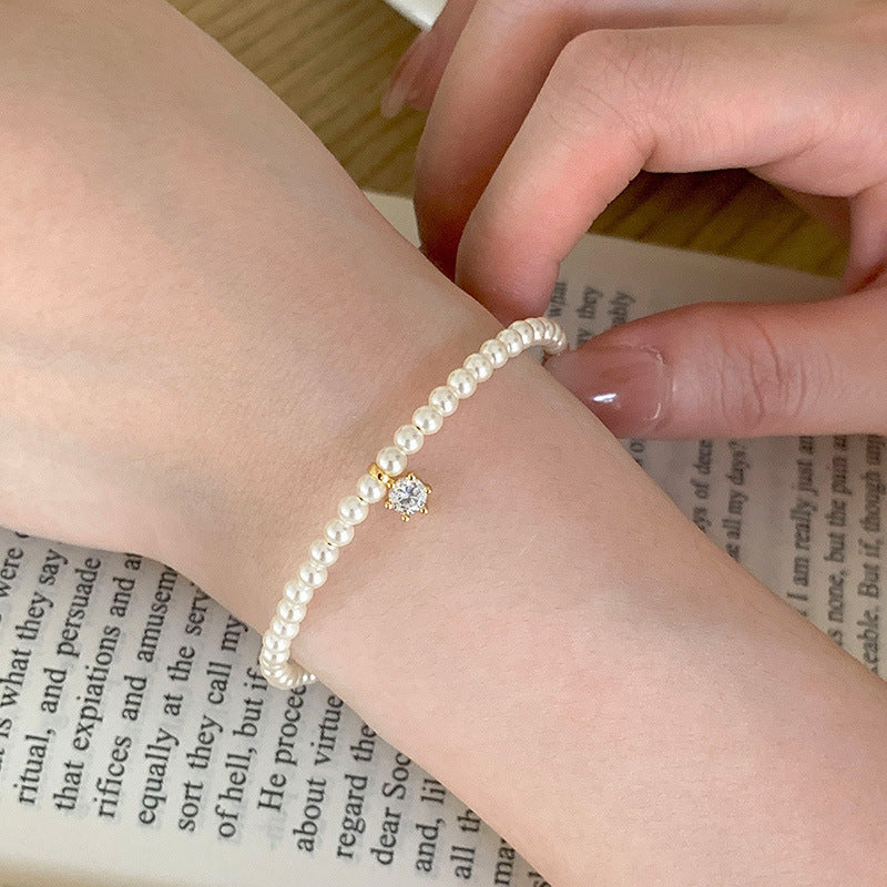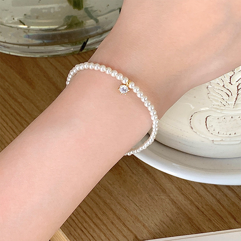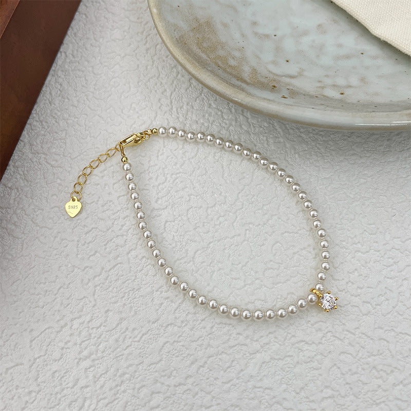 F廠【DQ0074S】韓版小眾仿珍珠手鍊女S925純銀輕奢優雅白鋯仿珍珠手飾品 25.10-1
