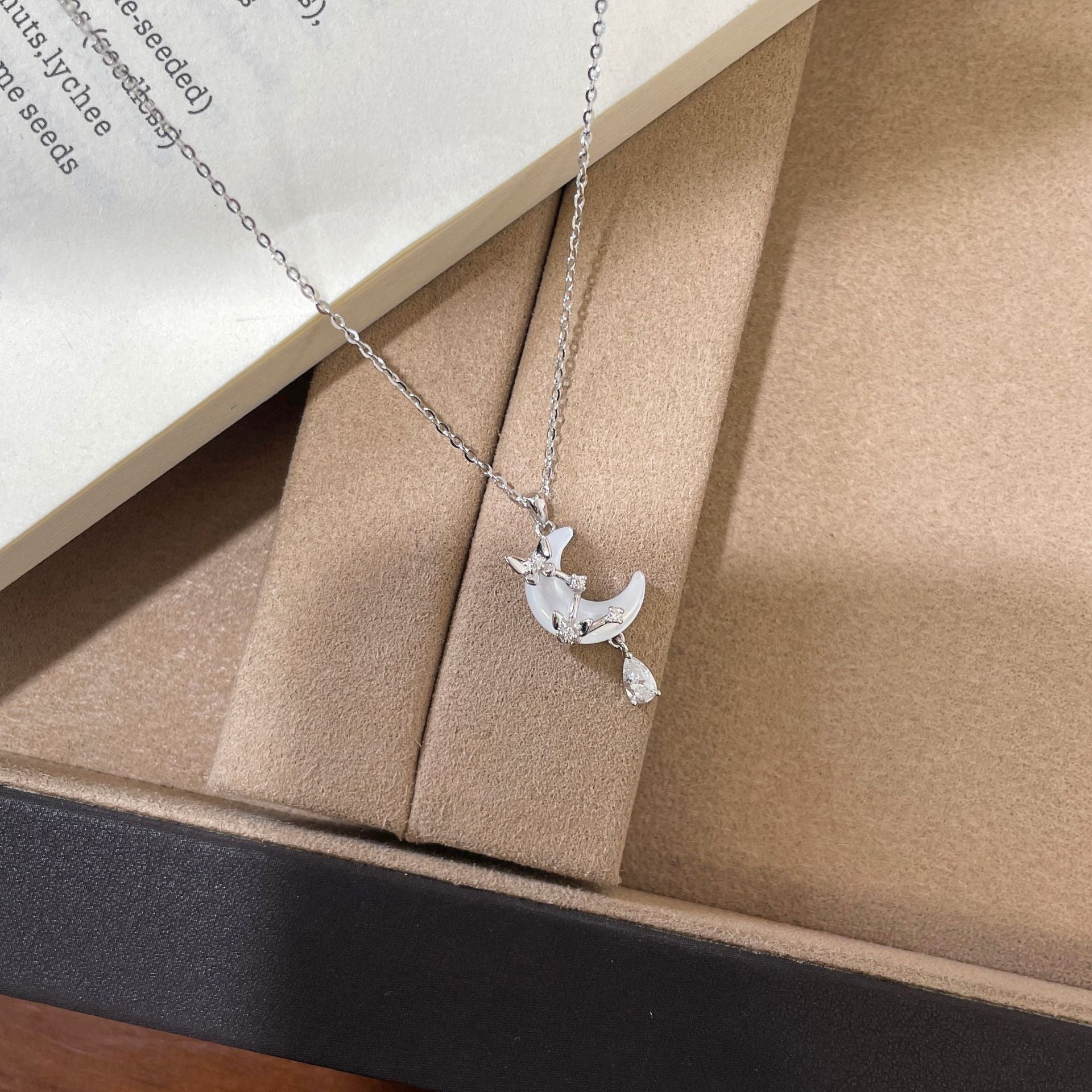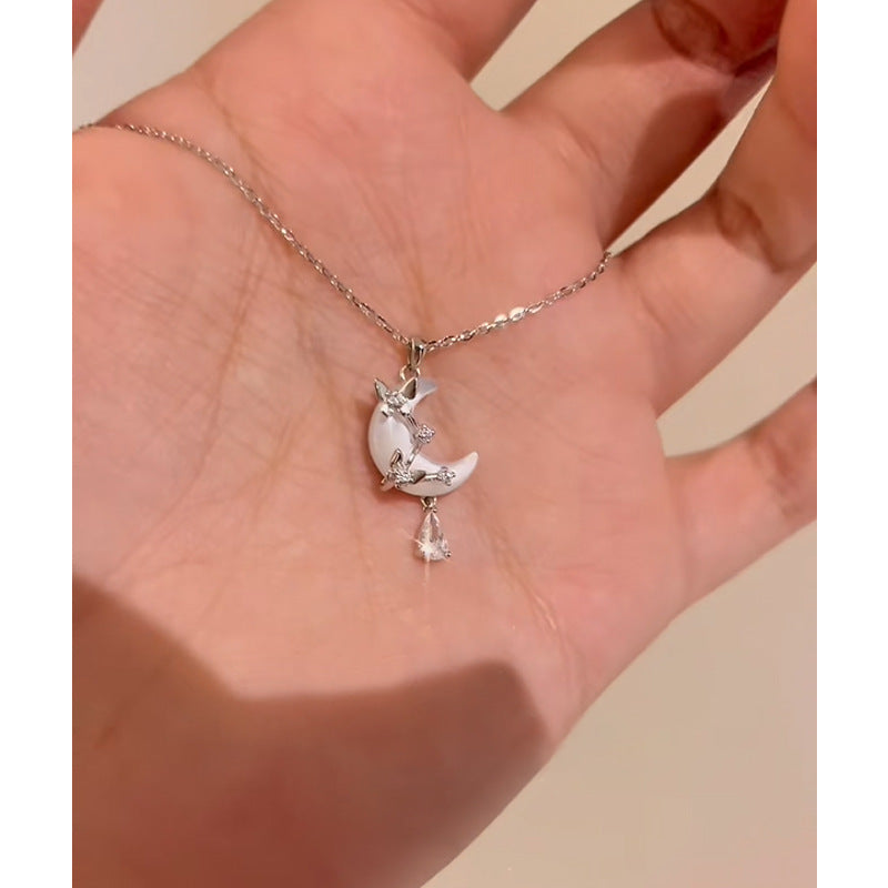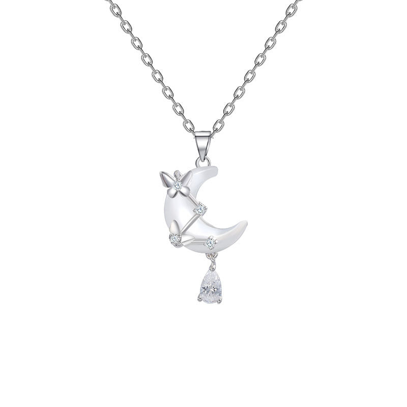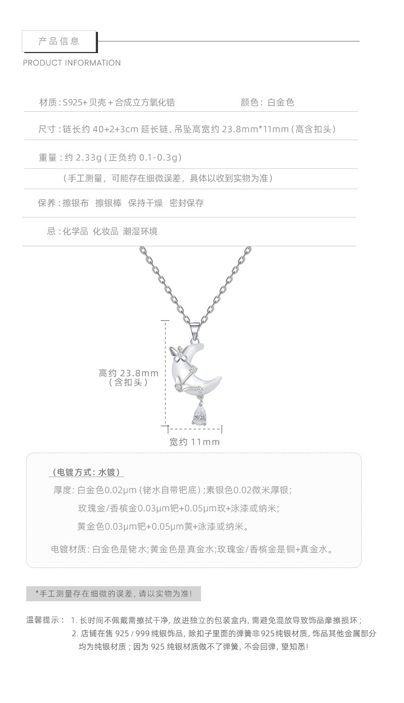 E廠【DQ0135N】小眾韓版S925純銀貝殼月亮項鍊女氣質輕奢蝴蝶水滴流蘇鎖骨鏈 26.04-3
