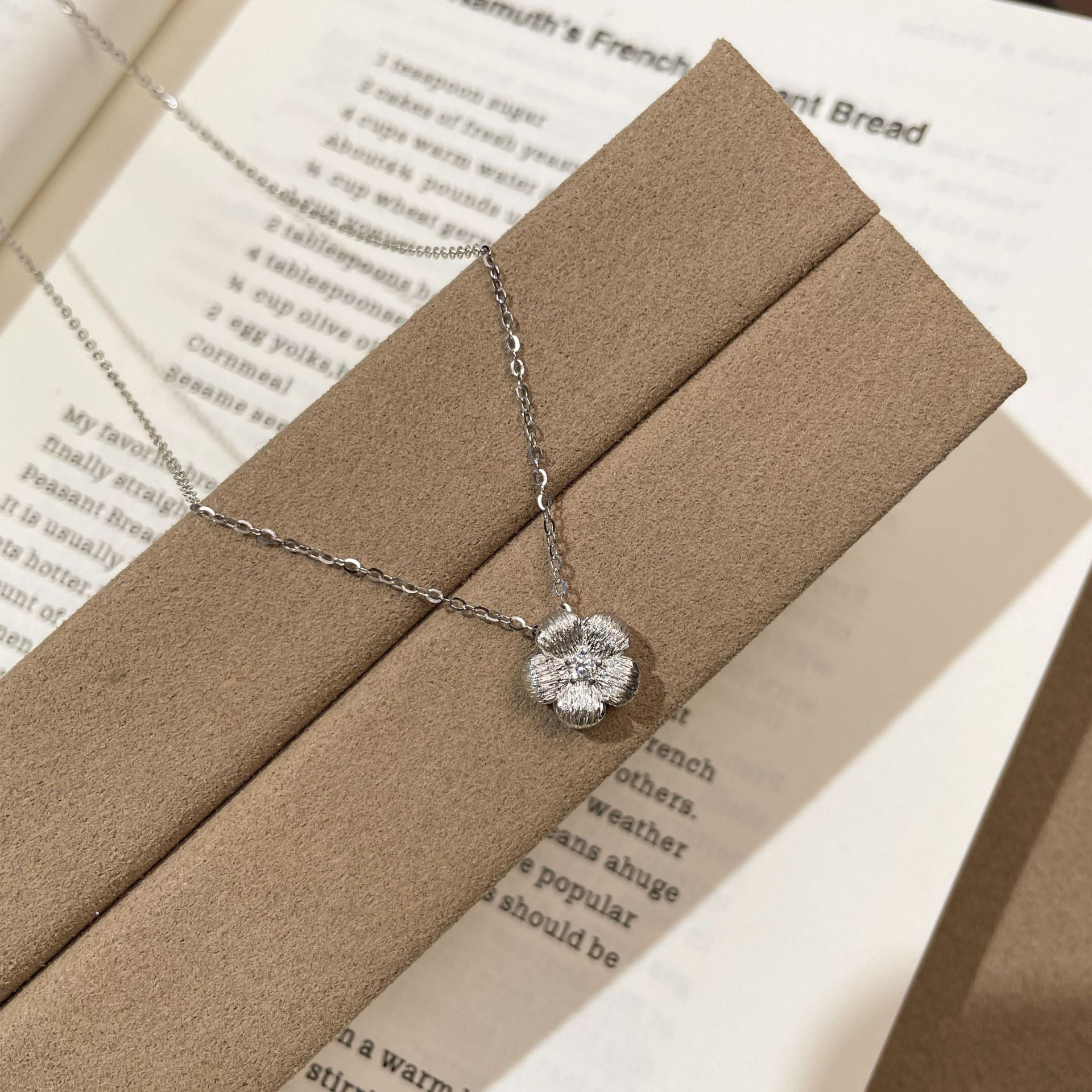 F廠【DQ0208N】中古風925純銀山茶花項鍊女拉絲工藝鎖骨鏈輕奢高級感首飾品 25.08-2