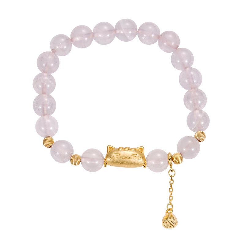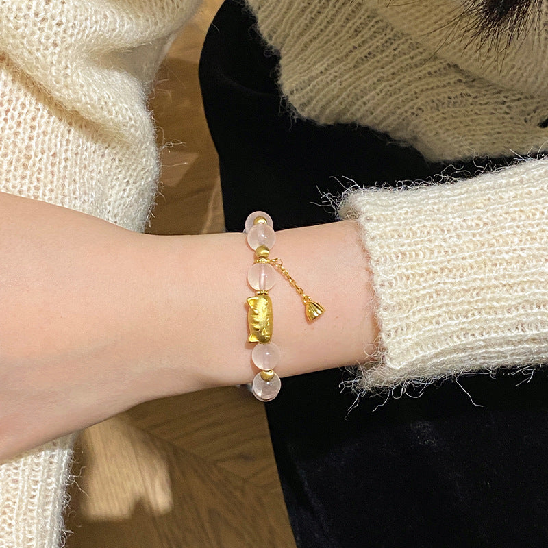 F廠【DQ0269S】全新中式天然粉水晶手串S925純銀萌趣法棍貓蓮蓬流蘇手飾女 25.10-1