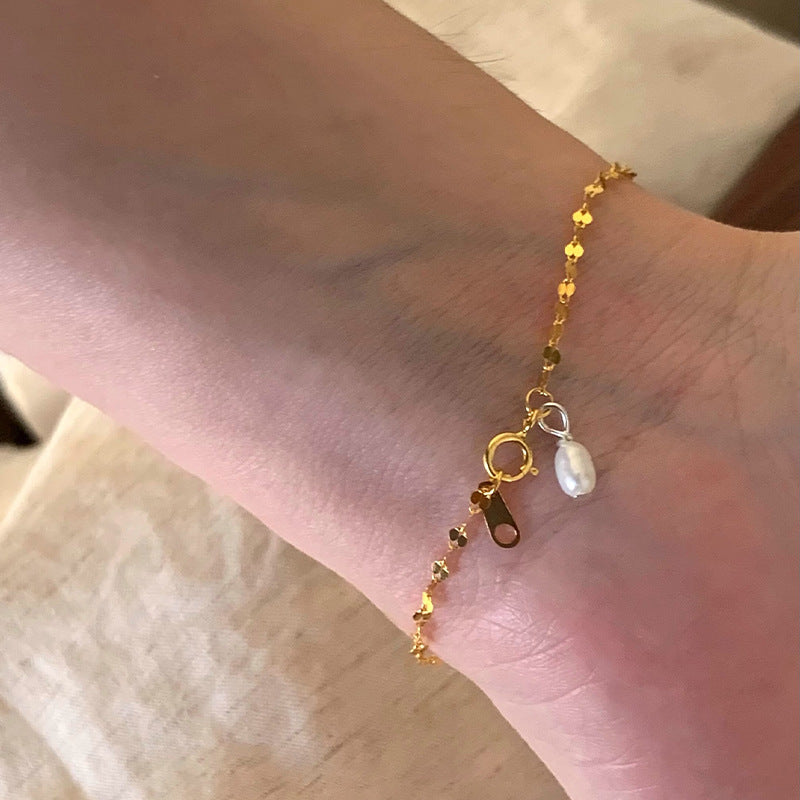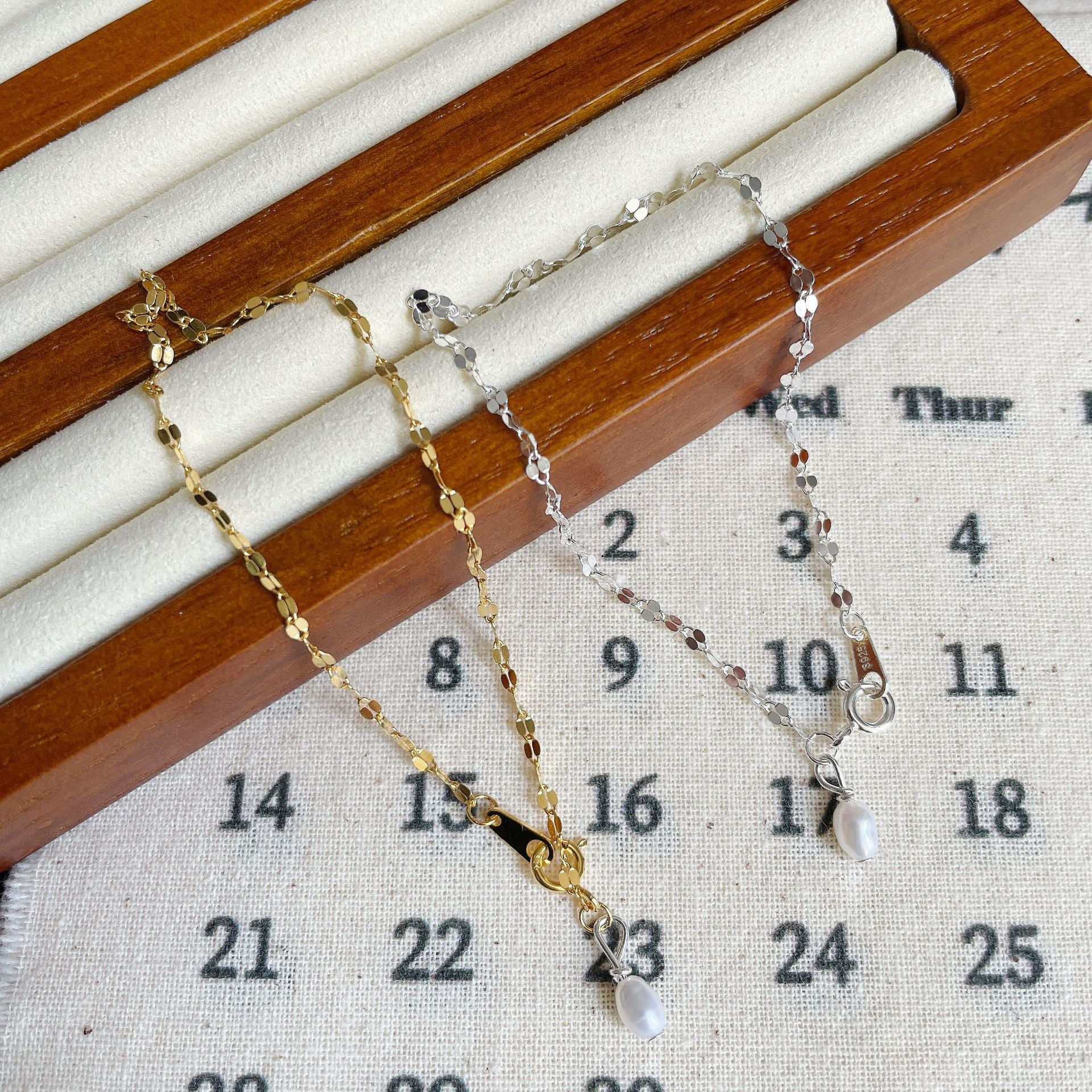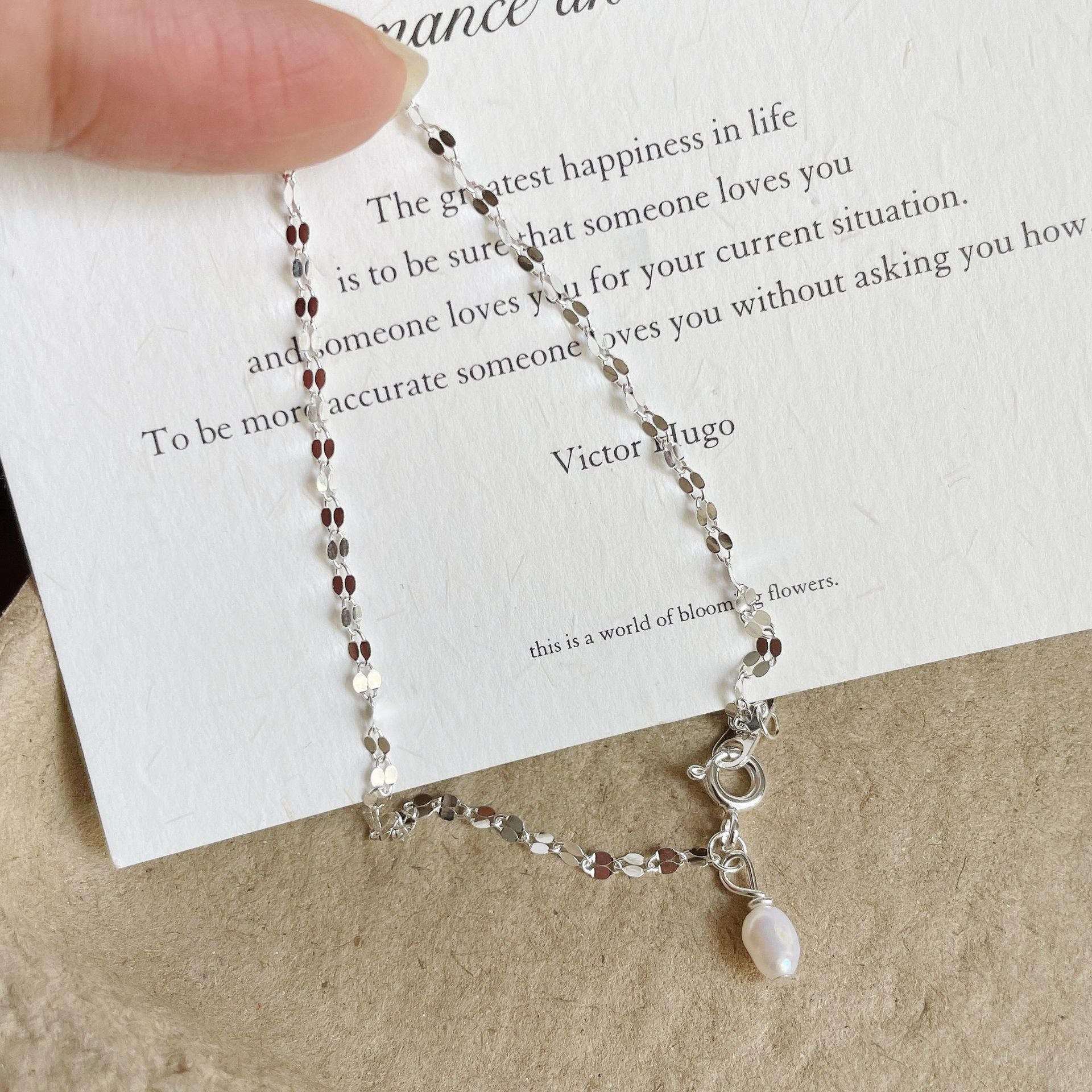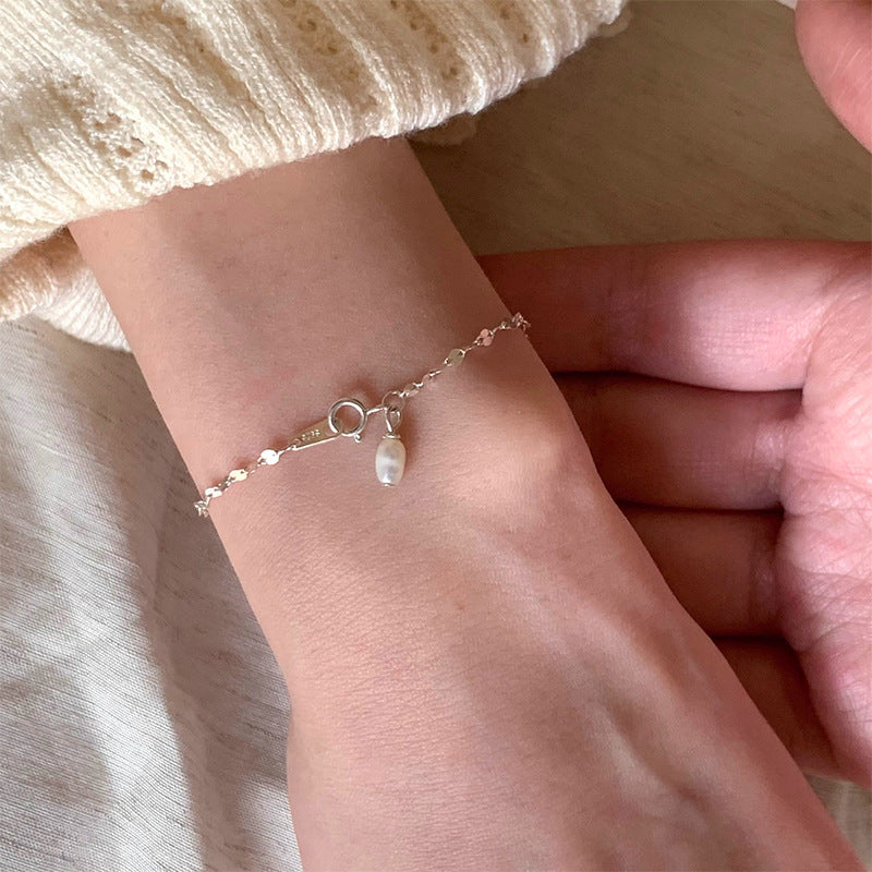 F廠【DQ0304S】S925銀波光粼粼亮片珍珠手鍊女小眾設計淡水珍珠疊戴手飾韓版 25.05-4