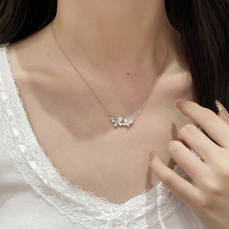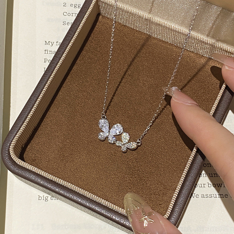 F廠【DQ0350N】足銀999精緻超閃蝴蝶項鍊女輕奢小眾滿鑲鋯石高級感鎖骨鏈潮 25.07-2