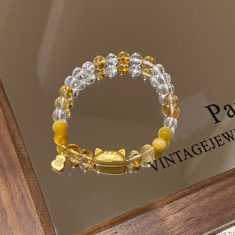 F廠【DQ0368S】天然白水晶法棍貓手串女S925銀高級感虎眼石葫蘆福牌顯白手飾 25.10-1