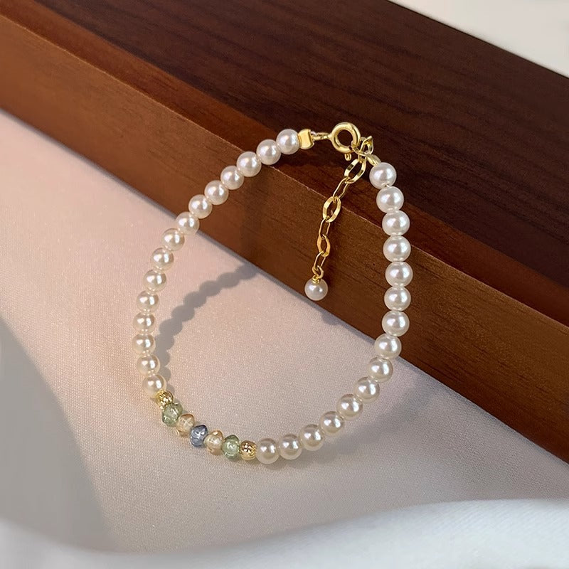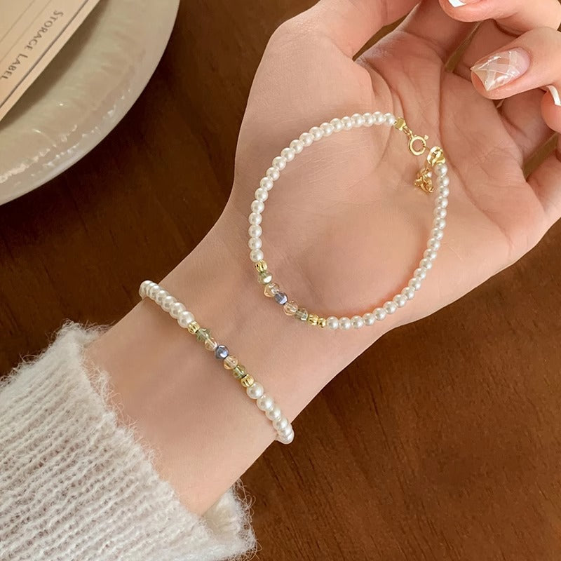 F廠【DQ0398S】S925純銀精緻施家仿珍珠手鍊女時尚ins琉璃珠精緻手飾潮 25.07-4