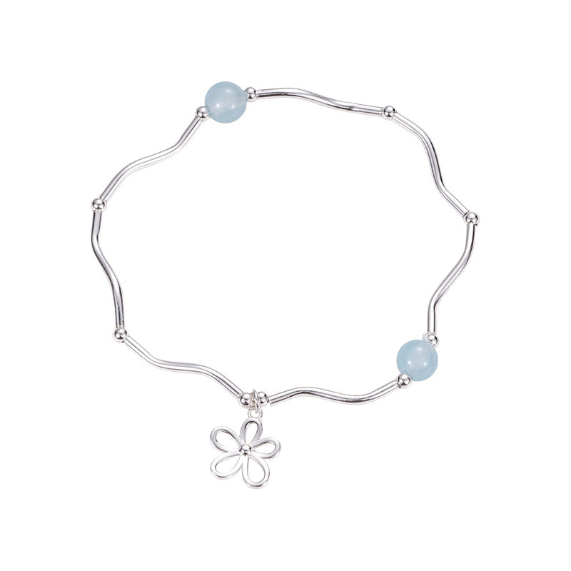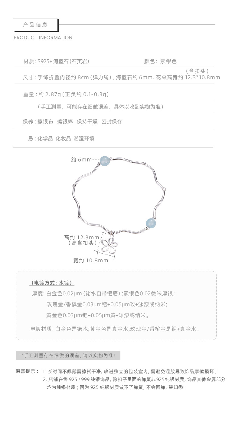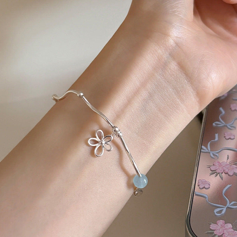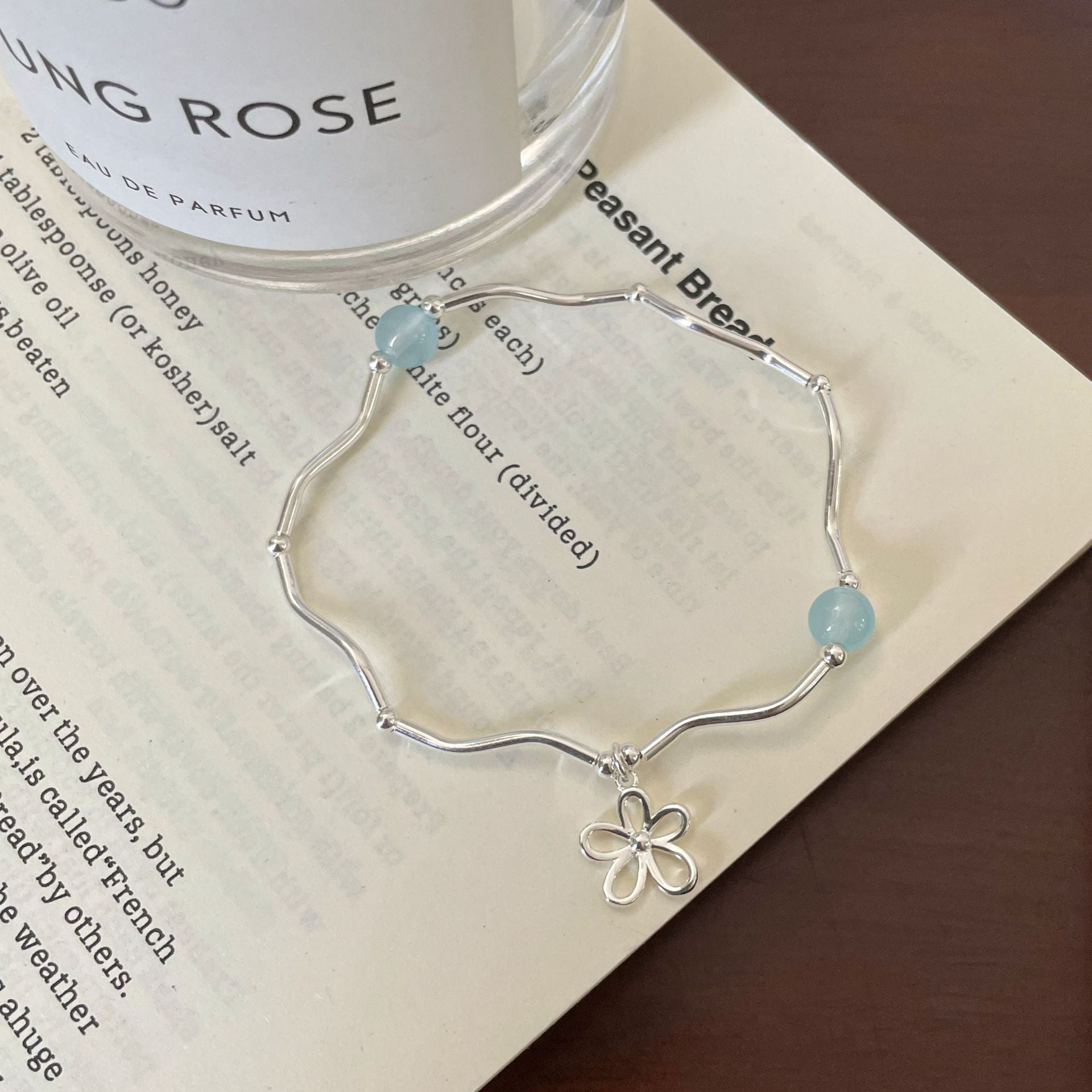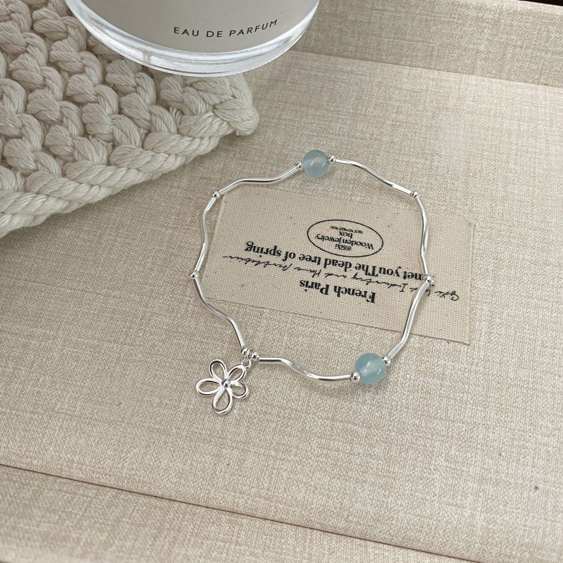 F廠【DQ0458S】S925純銀韓版鏤空花朵彎管手鍊女氣質高級感海藍石百搭手飾潮 25.10-3