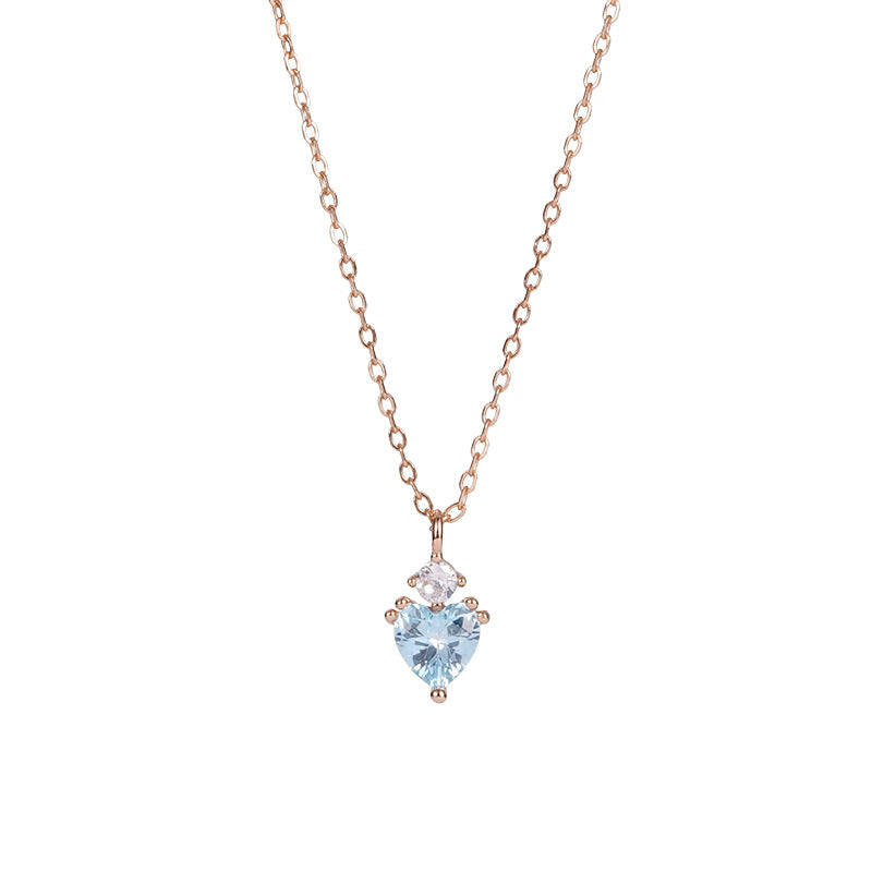F廠【DQ0567N】S925純銀輕奢小眾藍色愛心項鍊女高級感心形鋯石吊墜鎖骨鏈 25.10-2