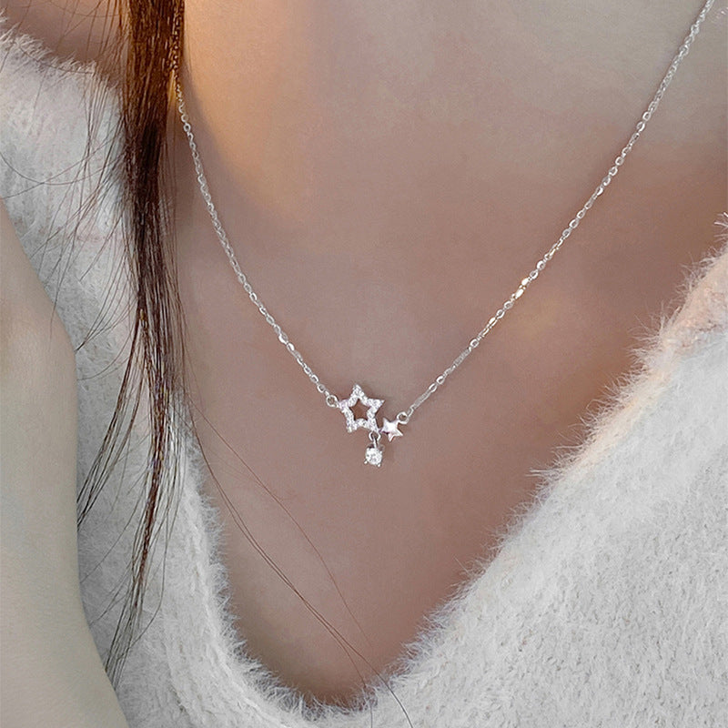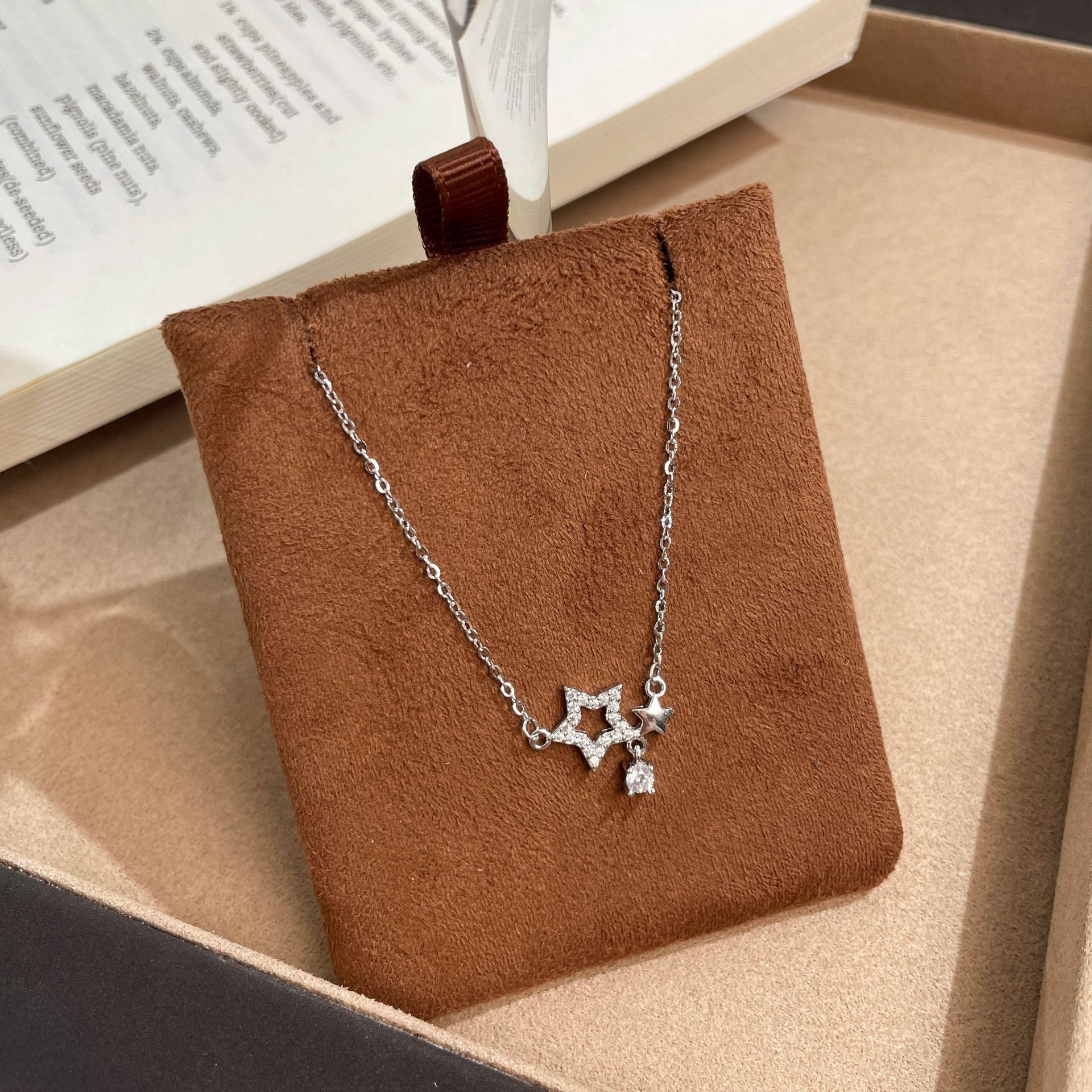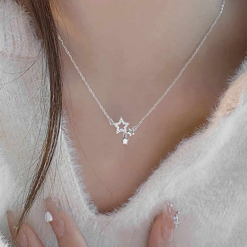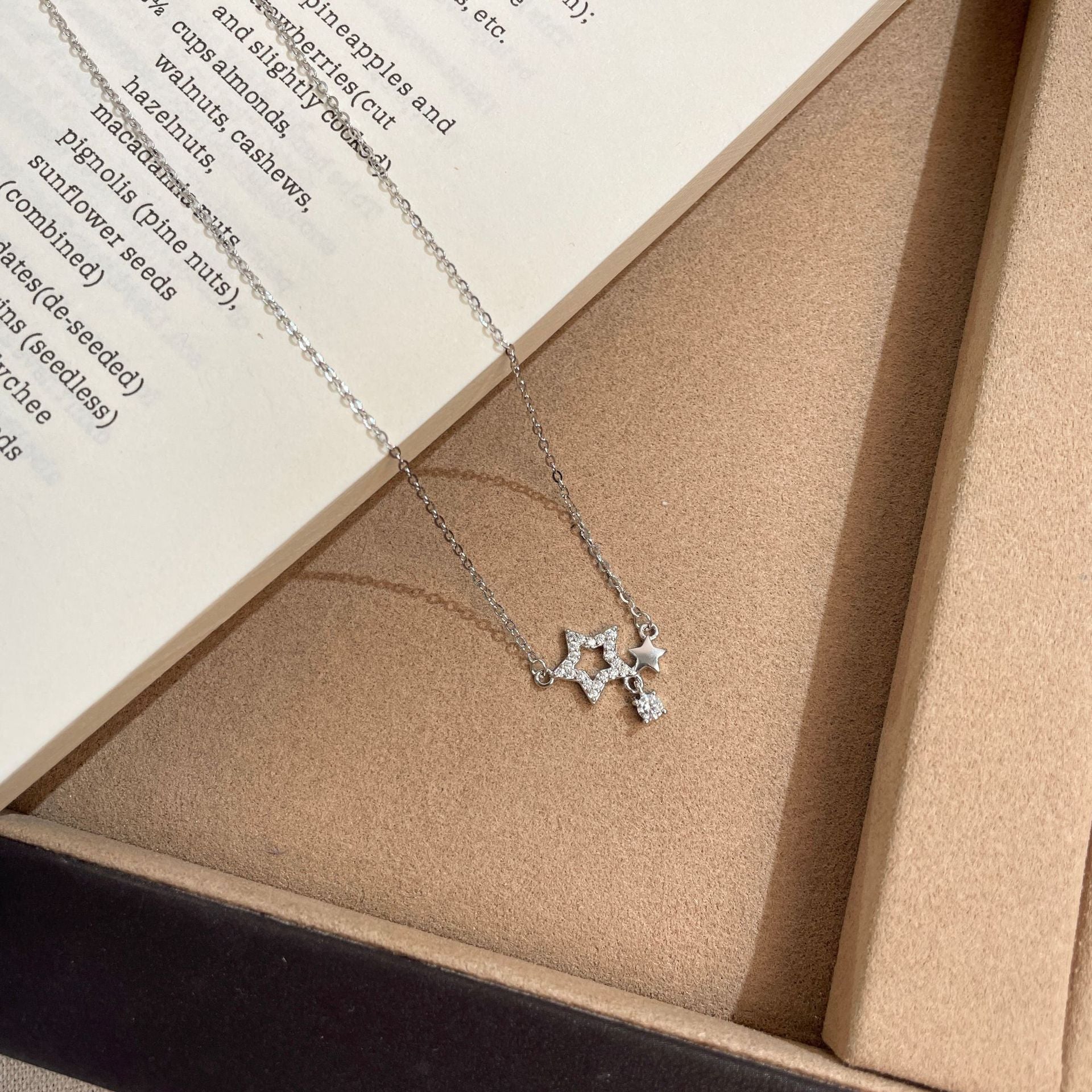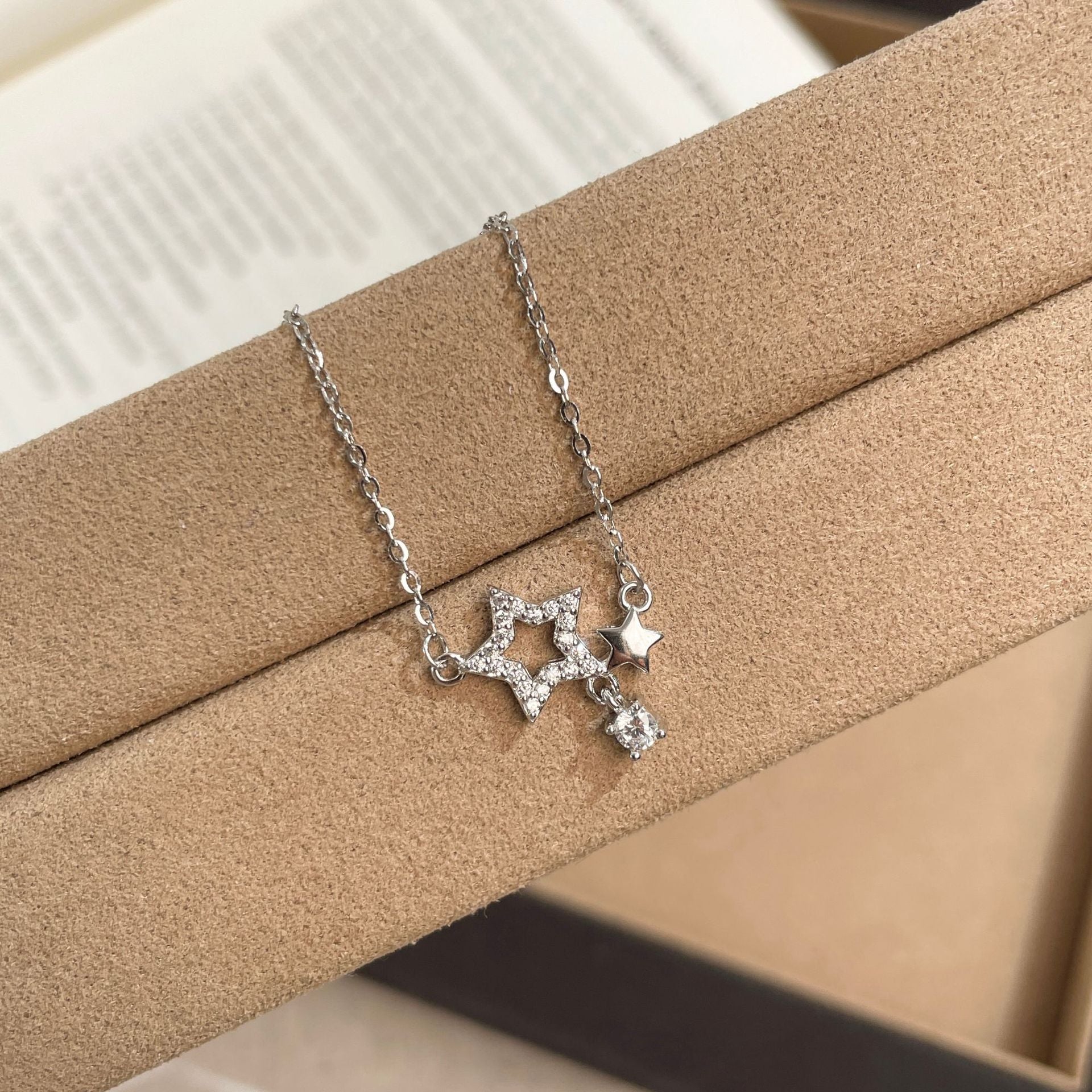 F廠【DQ0600N】S999純銀輕奢高級感星星項鍊女氣質冷淡風鑲鑽五角星鎖骨鏈潮 25.09-3