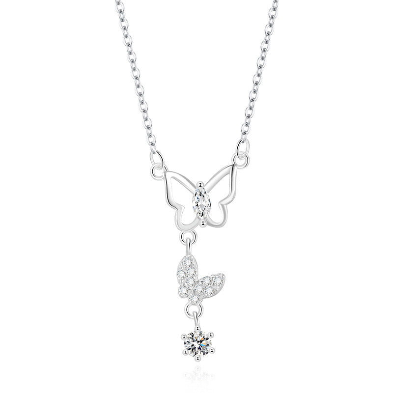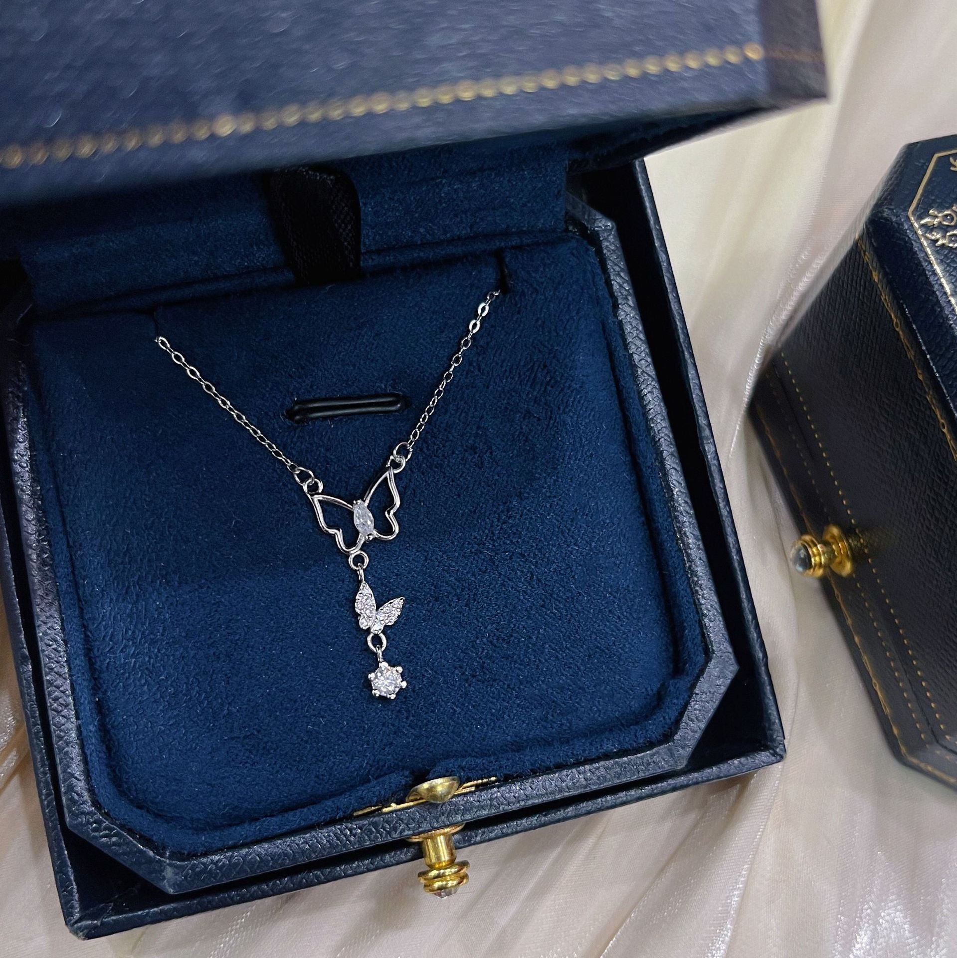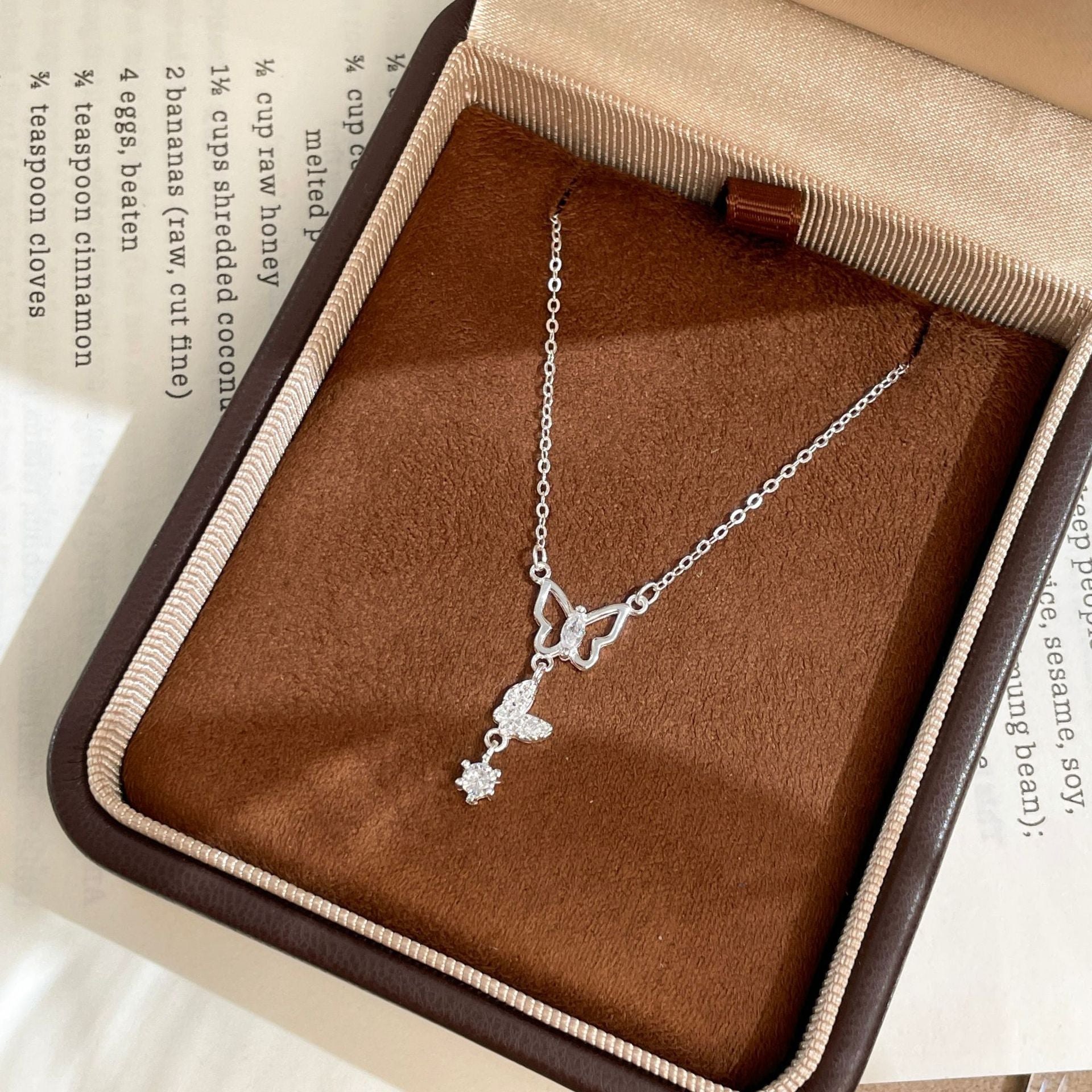 F廠【DQ0621N】S999純銀氣質甜蝴蝶流蘇項鍊女輕奢小眾鑲鋯石精緻鎖骨鏈潮 25.09-3