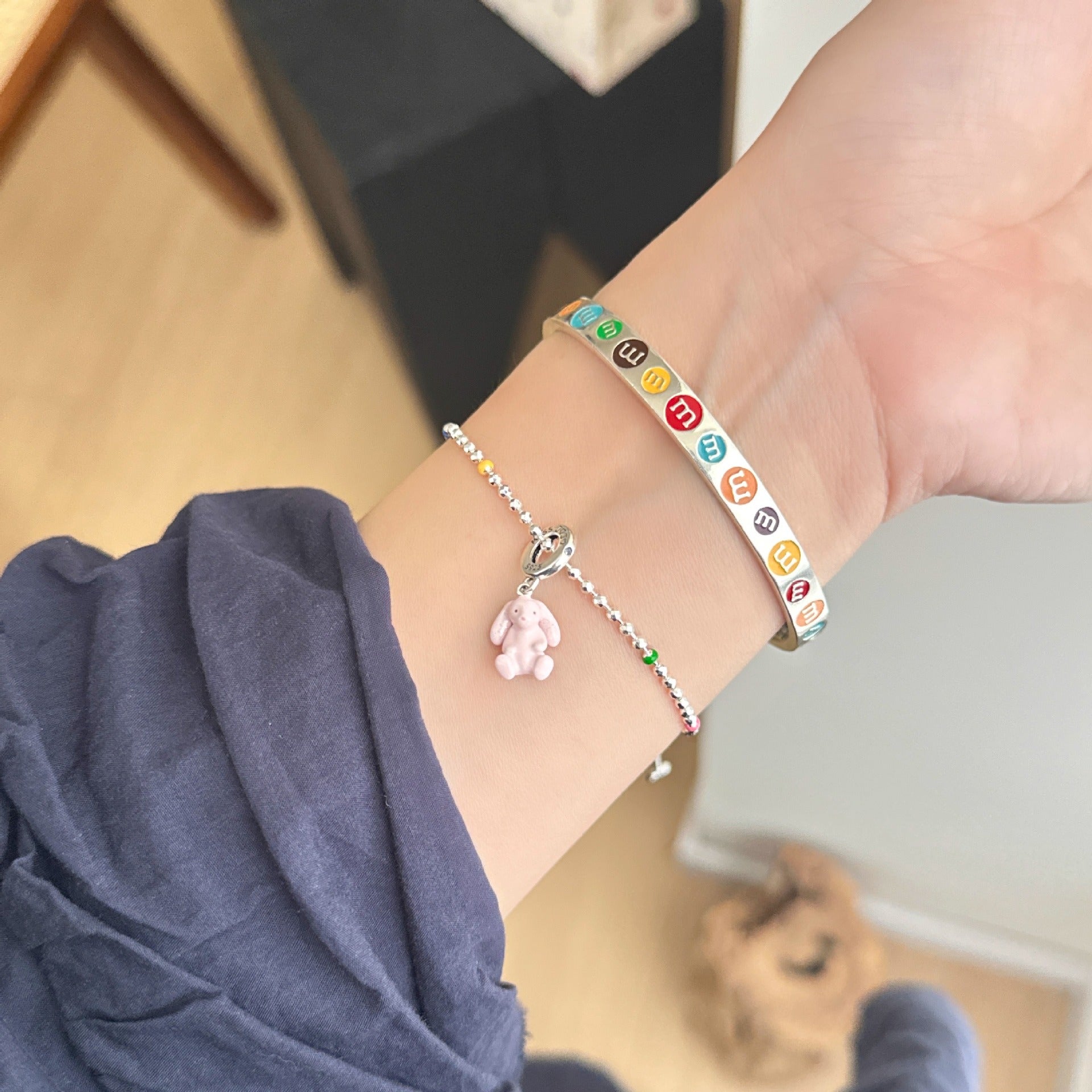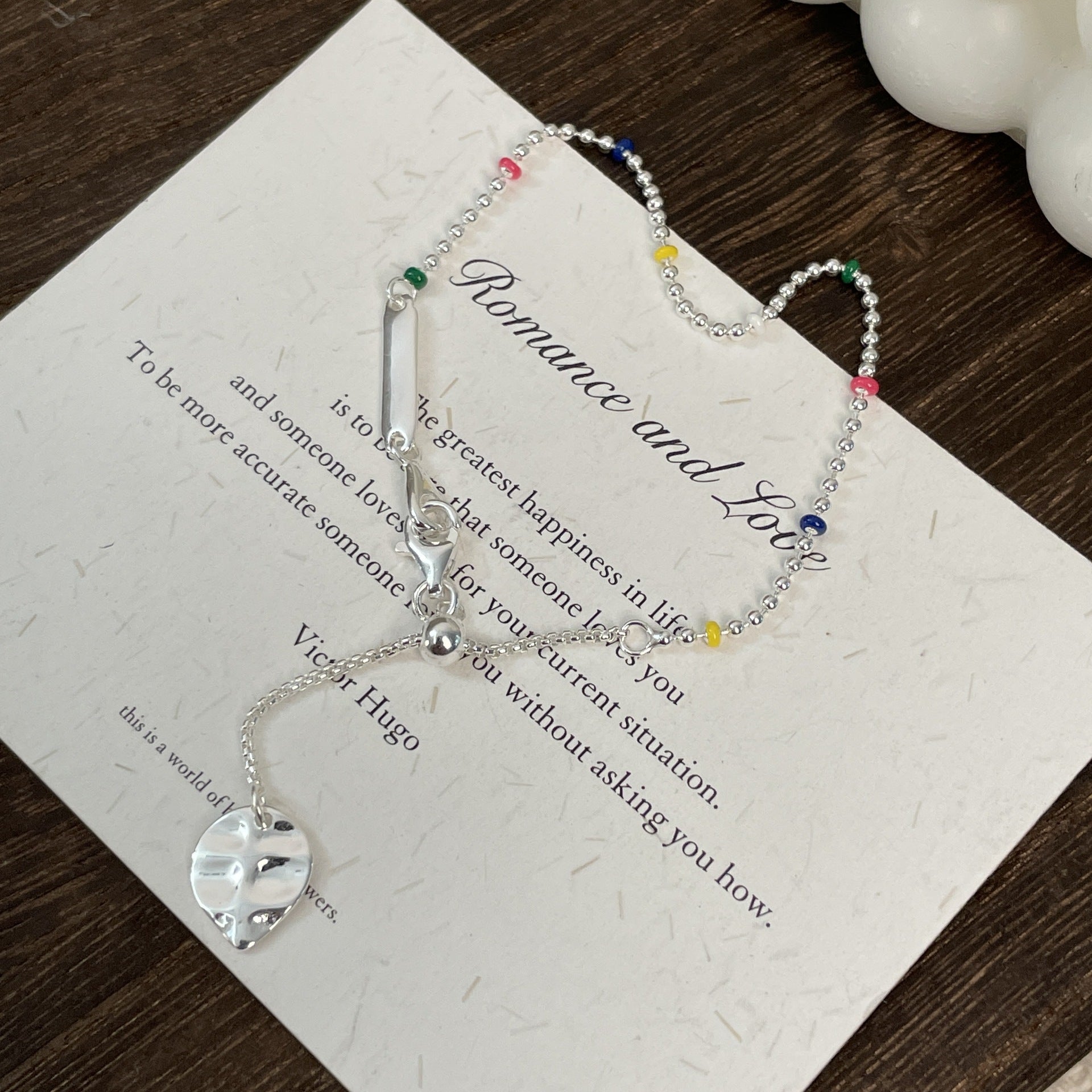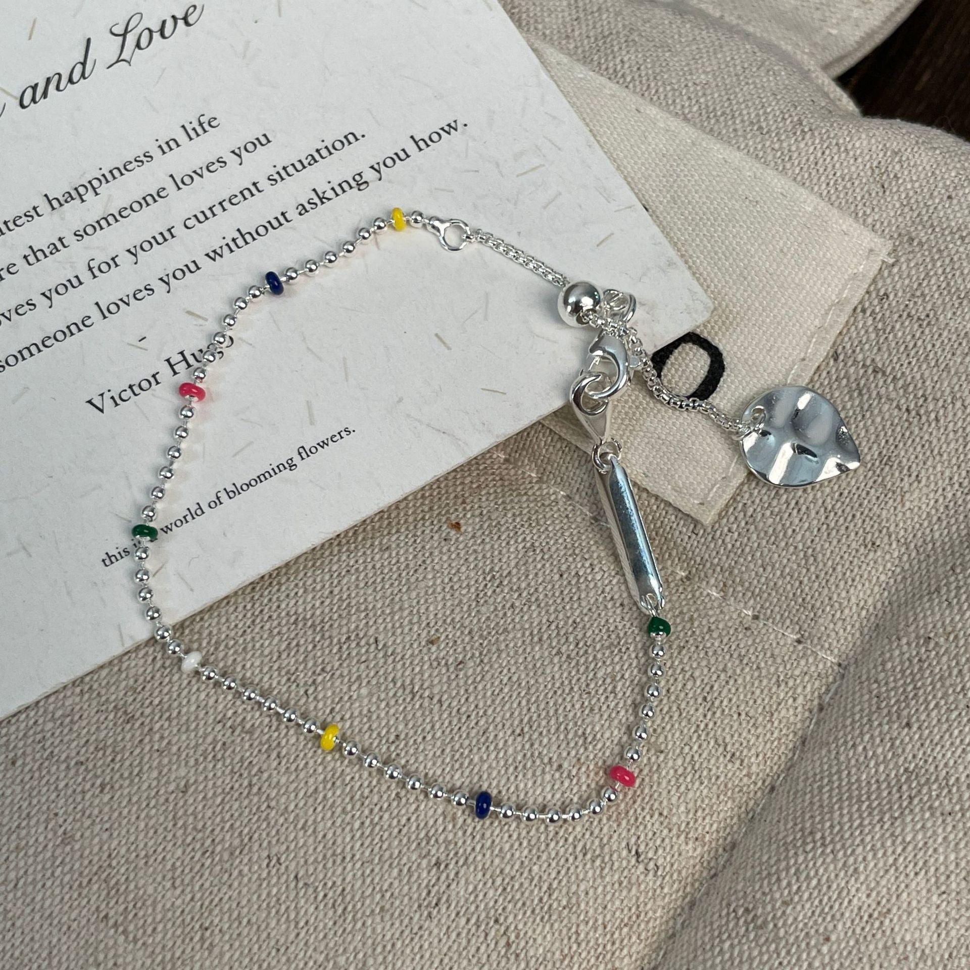 F廠【DQ0651S】S925純銀韓系簡約配色滴油圓珠手鍊女時尚高級感抽拉式手飾潮 25.07-4