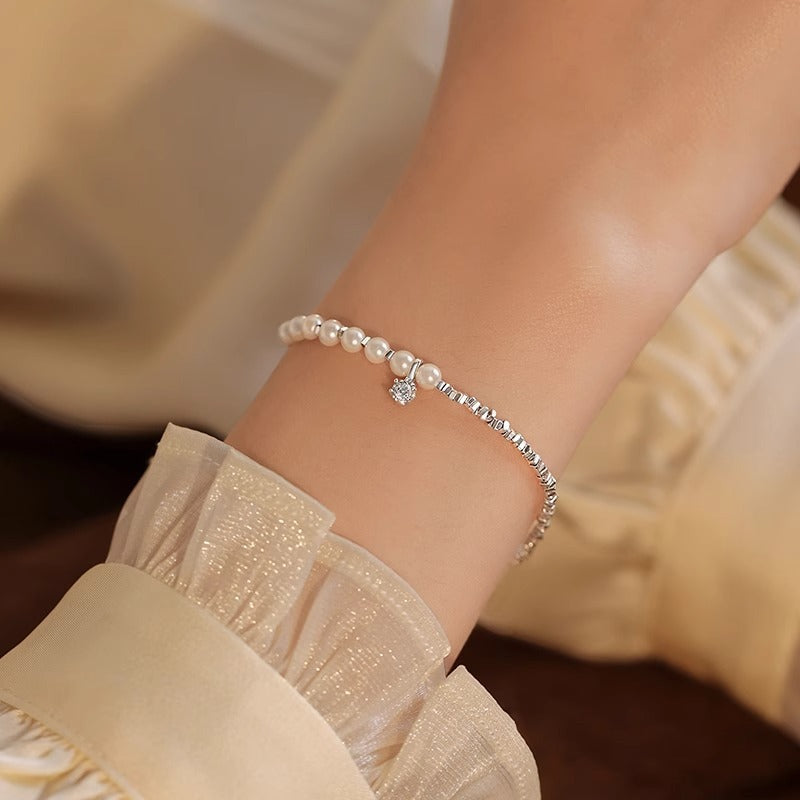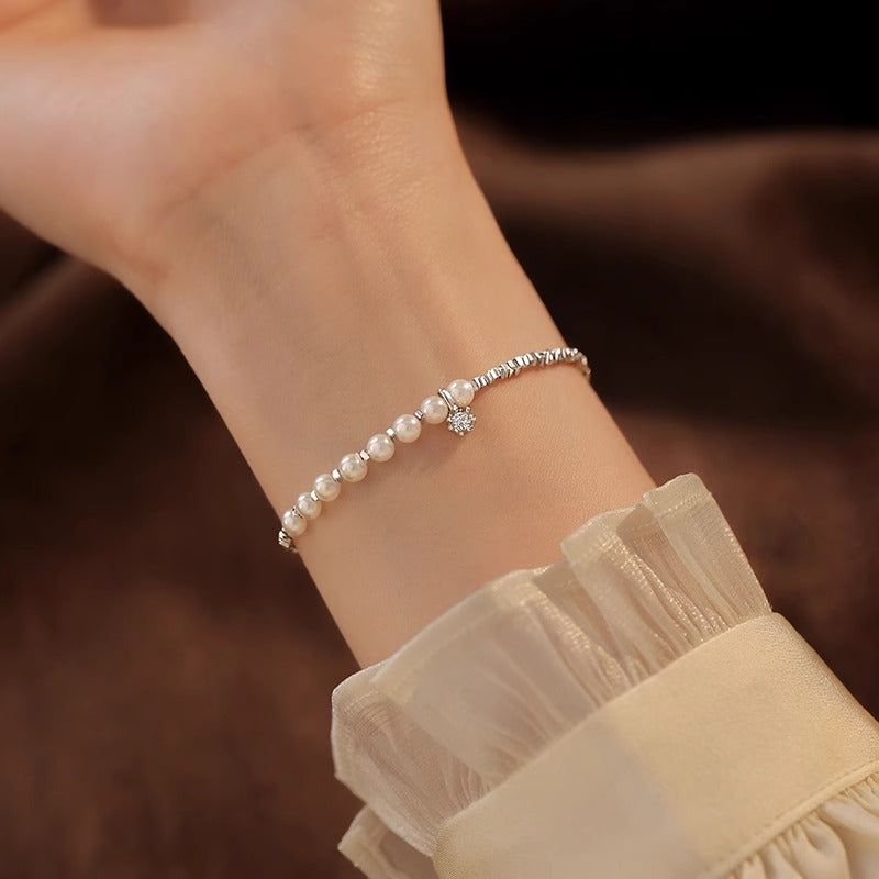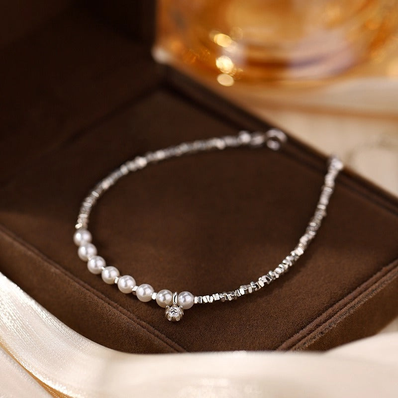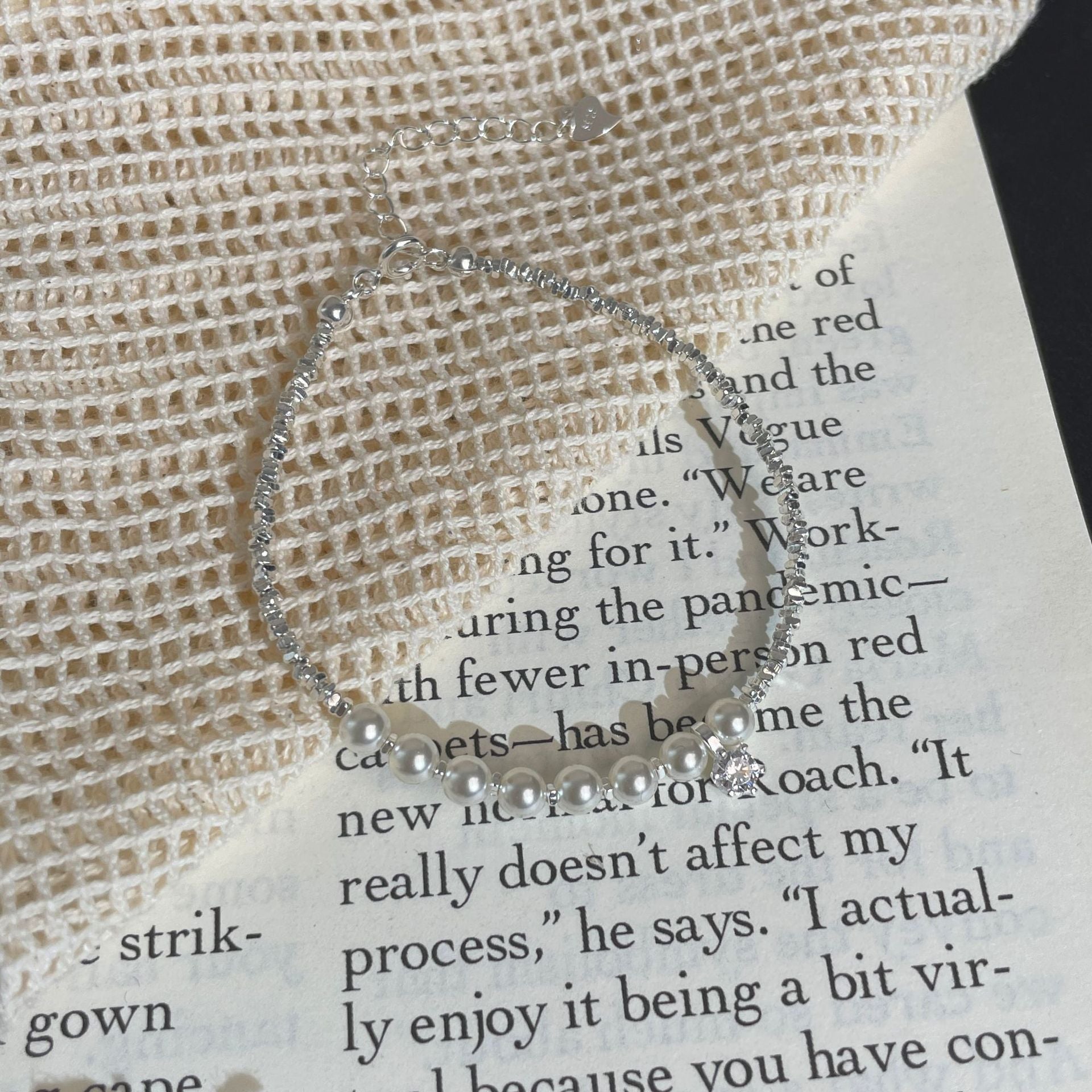 F廠【DQ0654S】S925純銀精緻簡約仿珍珠手鍊女ins風設計碎銀子小眾手飾 25.07-4