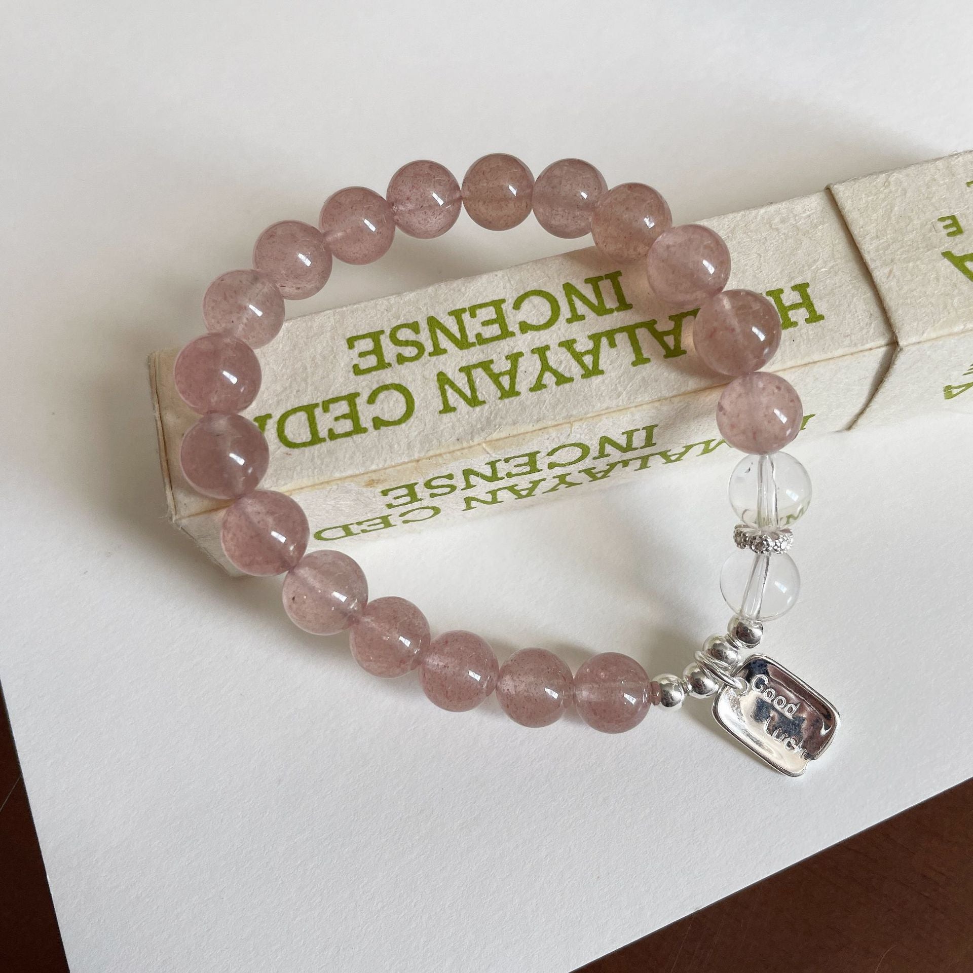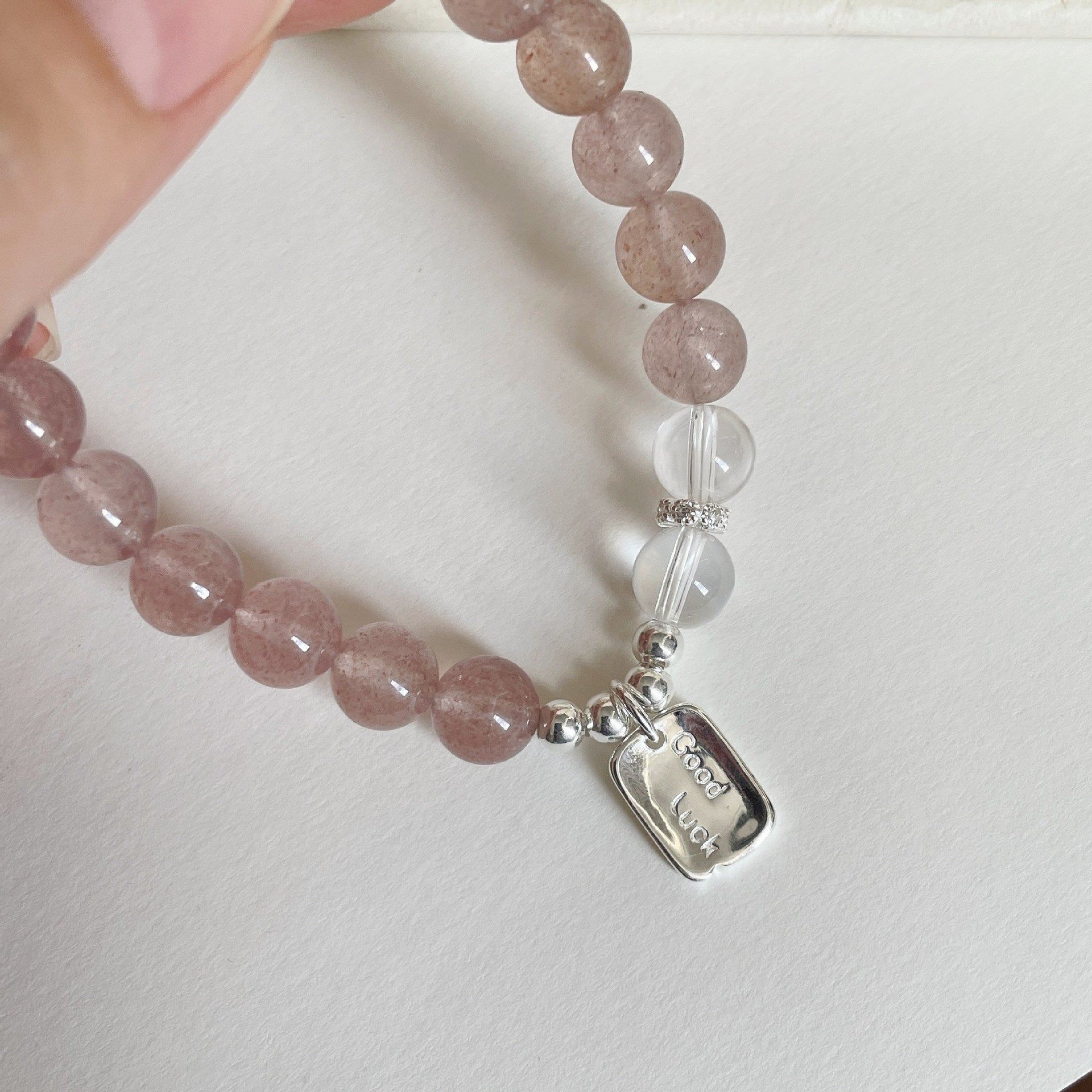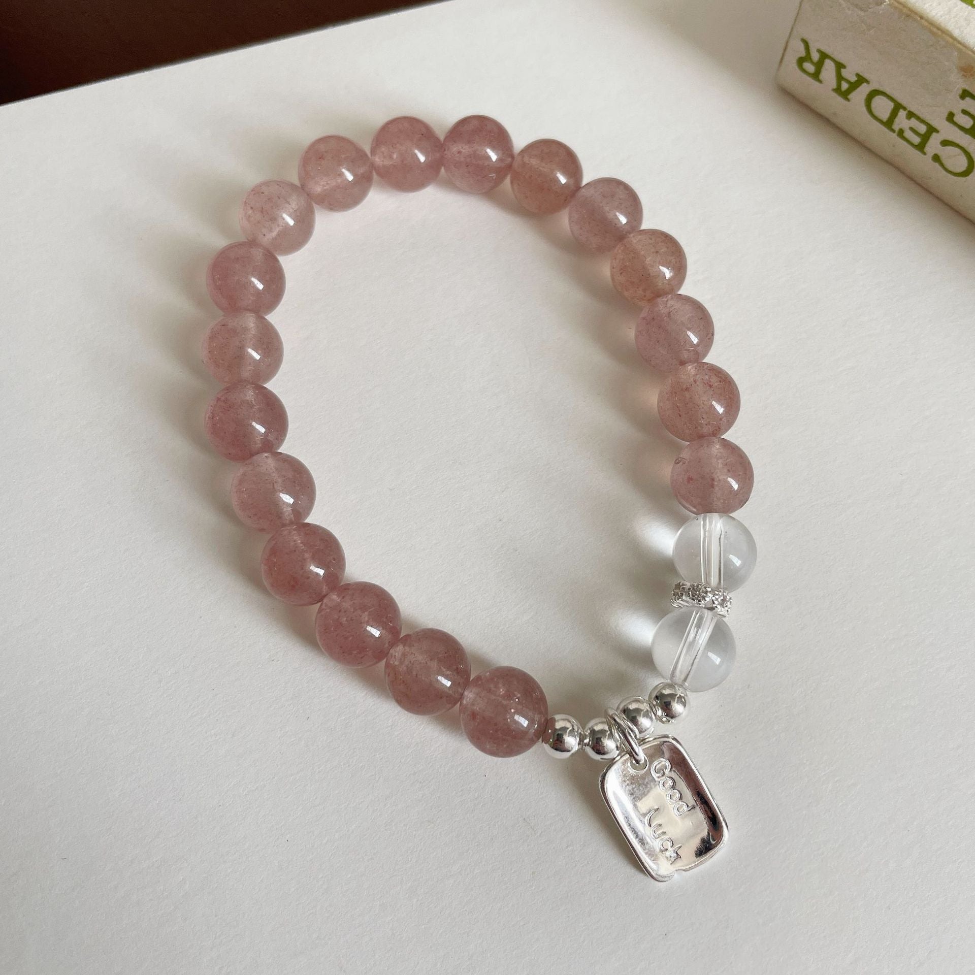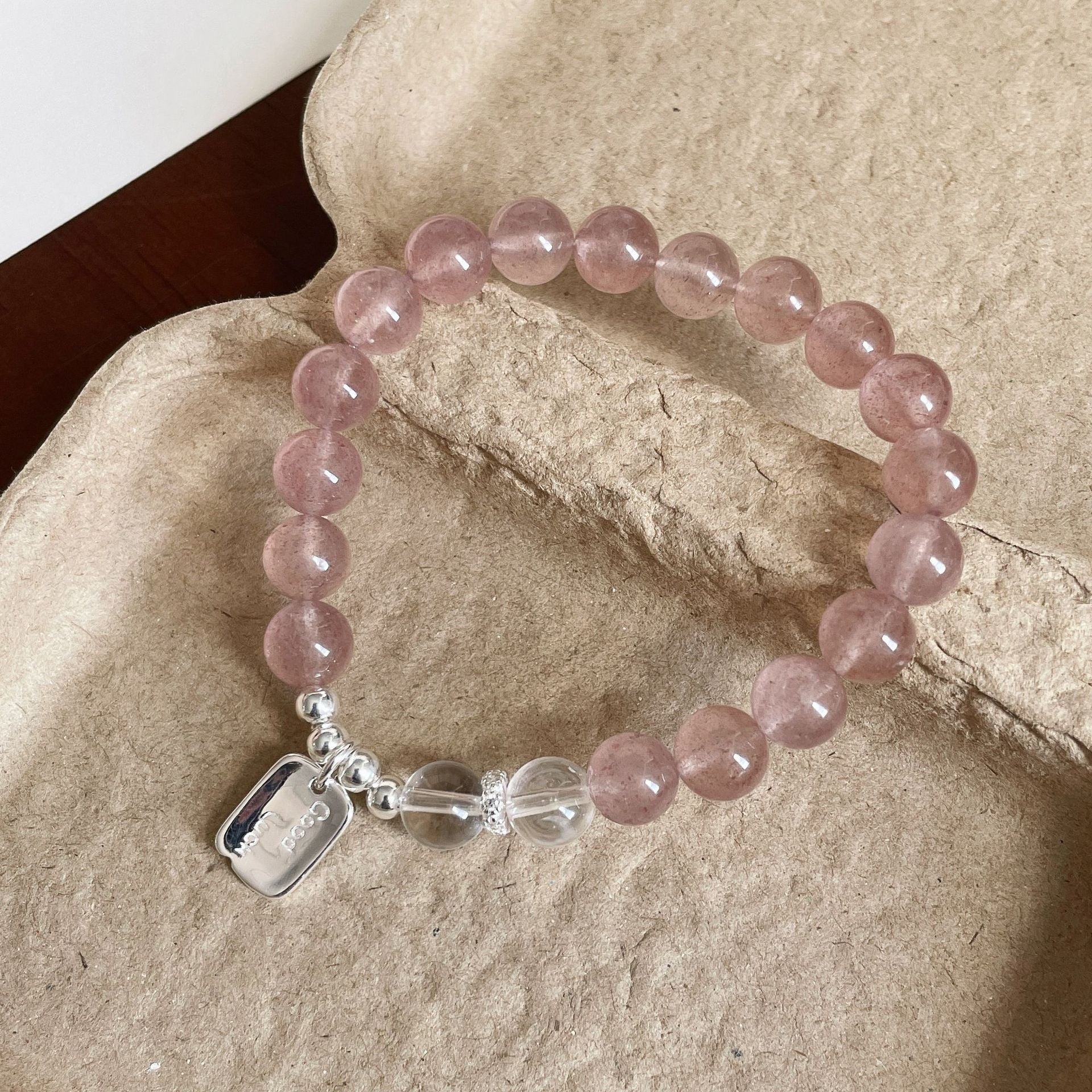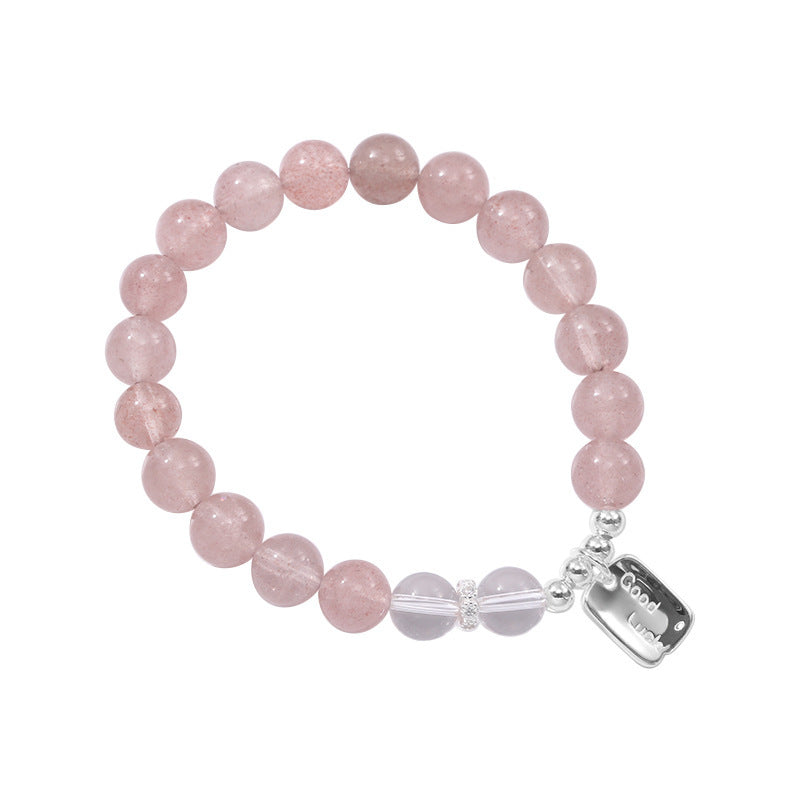 F廠【DQ0720S】小清新天然草莓晶手串女S925純銀goodluck方牌水晶串珠手飾潮 25.07-1